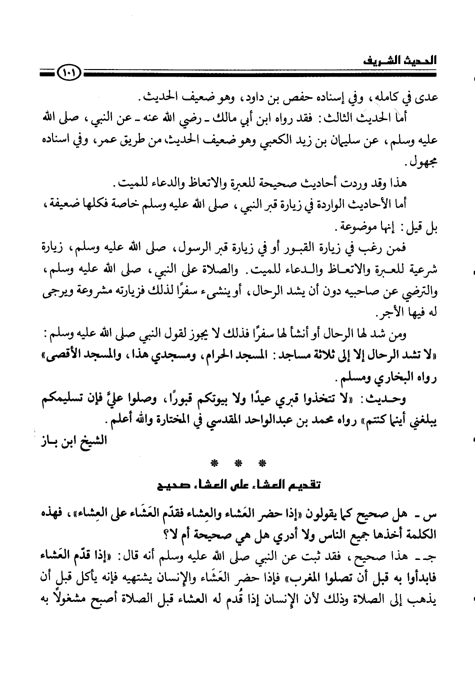 ومن شد الرحال أو أنشأ لها سفراً فذلك لا يجوز لقول النبي، - صلى الله عليه وسلم -، {لا تشد الرحال إلا إلى ثلاثة مساجد المسجد الحرام، ومسجدي هذا، والمسجد الأقصى} رواه البخاري ومسلم.