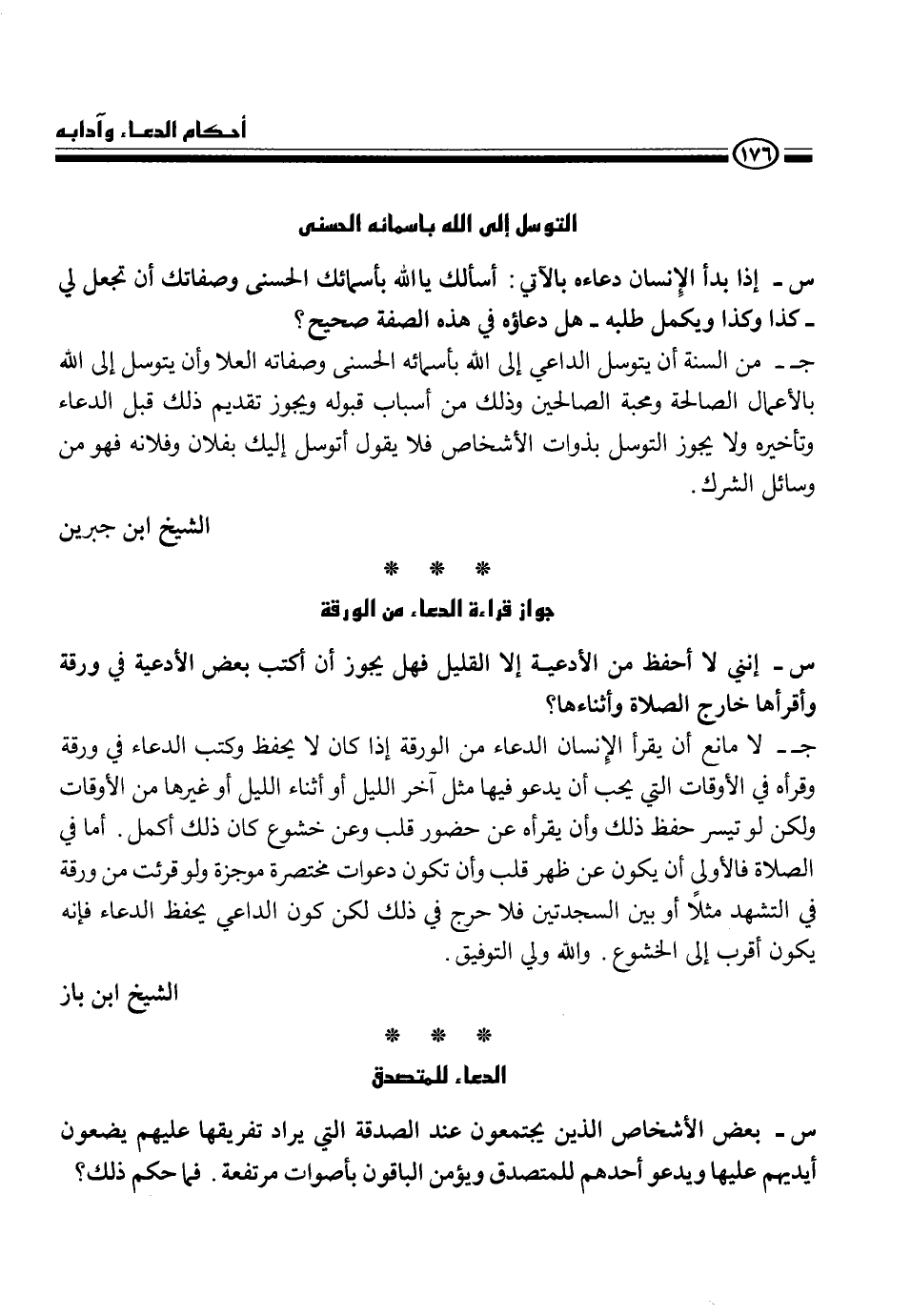 ج- لا مانع أن يقرأ الإنسان الدعاء من الورقة إذا كان لا يحفظ كتب الدعاء في ورقة وقرأه في الأوقات التي يجب أن يدعو فيها مثل آخر الليل أو غيرها من الأوقات ولكن لو تيسر حفظ ذلك وأن يقرأه عن حضور قلب وعن خشوع كان ذلك أكمل، أما في الصلاة فالأولى أن يكون عن ظهر قلب وأن تكون دعوات مختصرة موجزة ولو قرئت من ورقة في التشهد مثلاً أو بين السجدتين فلا حرج في ذلك لكن كون الداعي يحفظ الدعاء فإنه يكون أقرب إلى الخشوع.