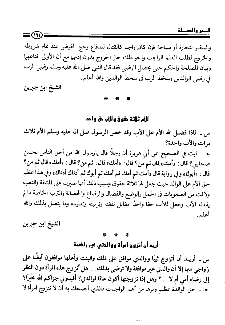 س - لماذا فضل الله الأم على الأب وقد خص الرسول، - صلى الله عليه وسلم -، ثلاث مرات والأب واحدة؟