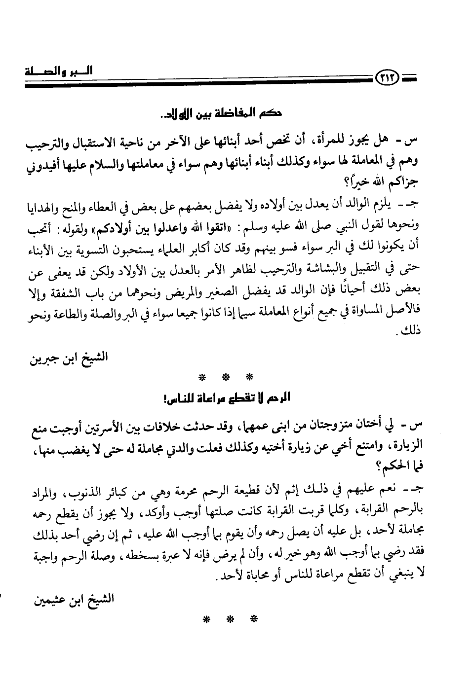 ج- نعم عليهم في ذلك إثم قطيعة الرحم محرمة وهي من كبائر الذنوب، والمراد بالرحم القرابة، وكلما قربت القرابة كانت صلتها أوجب وأوكد، ولا يجوز أن يقطع رحمه مجاملة لأحد، بل عليه أن يصل رحمه وأن يقوم بما أوجب الله عليه، ثم إن رضي أحد بذلك فقد رضي بما أوجب الله وهو خير له، وأن لم يرض فإنه لا عيرة بسخطه، وصلة الرحم واجبة لا ينبغي أن تقطع مراعاة للناس أو محاباة لأحد.