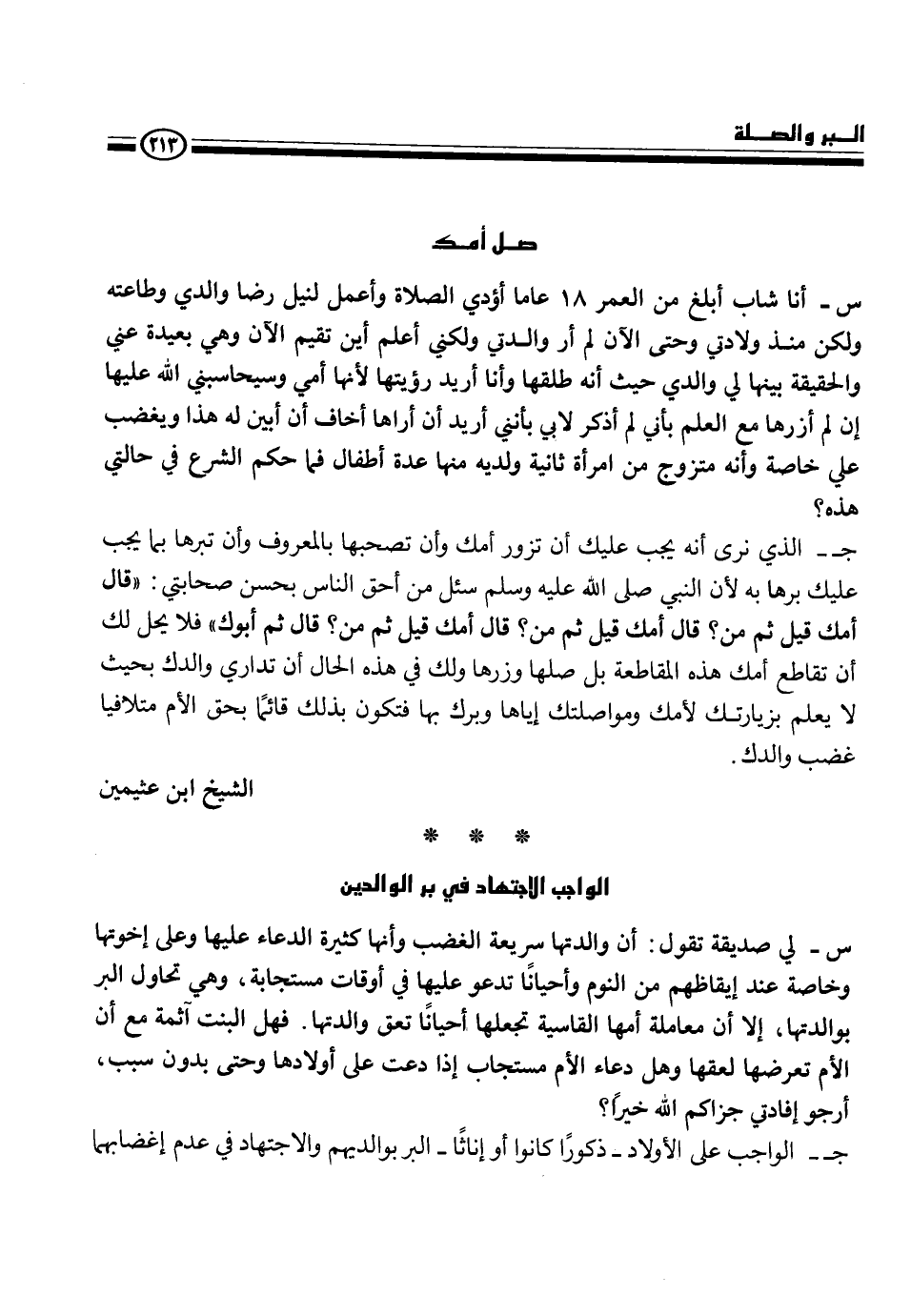 ج- الواجب على الأولاد - ذكوراً كانوا أو إناثاً - البر بوالديهم والاجتهاد في عدم إغضابهما