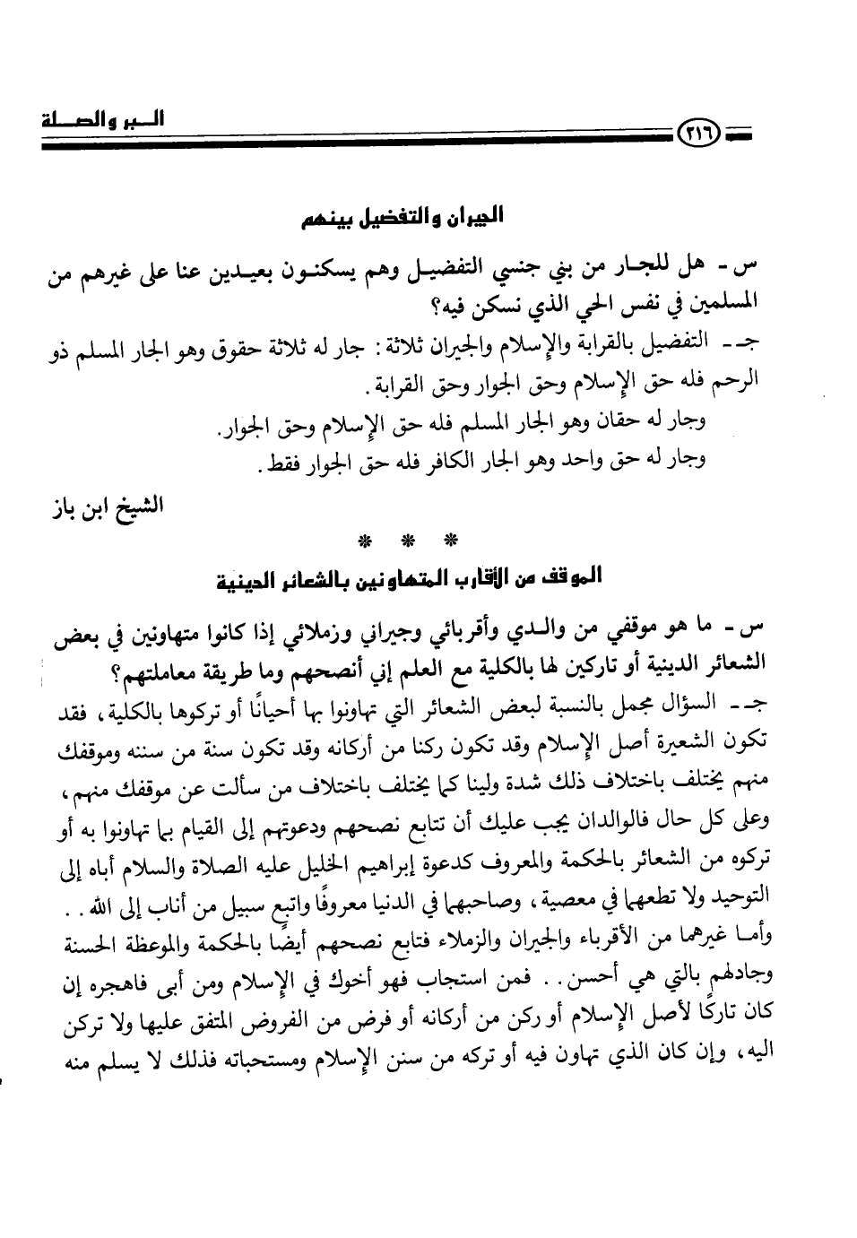 ج- التفضيل بالقرابة والإسلام والجيران ثلاثة