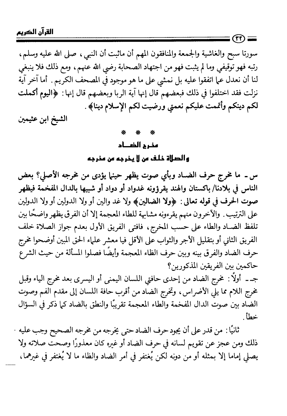 مخرج الضاد والصلاة خلف من لا يخرجه من مخرجه