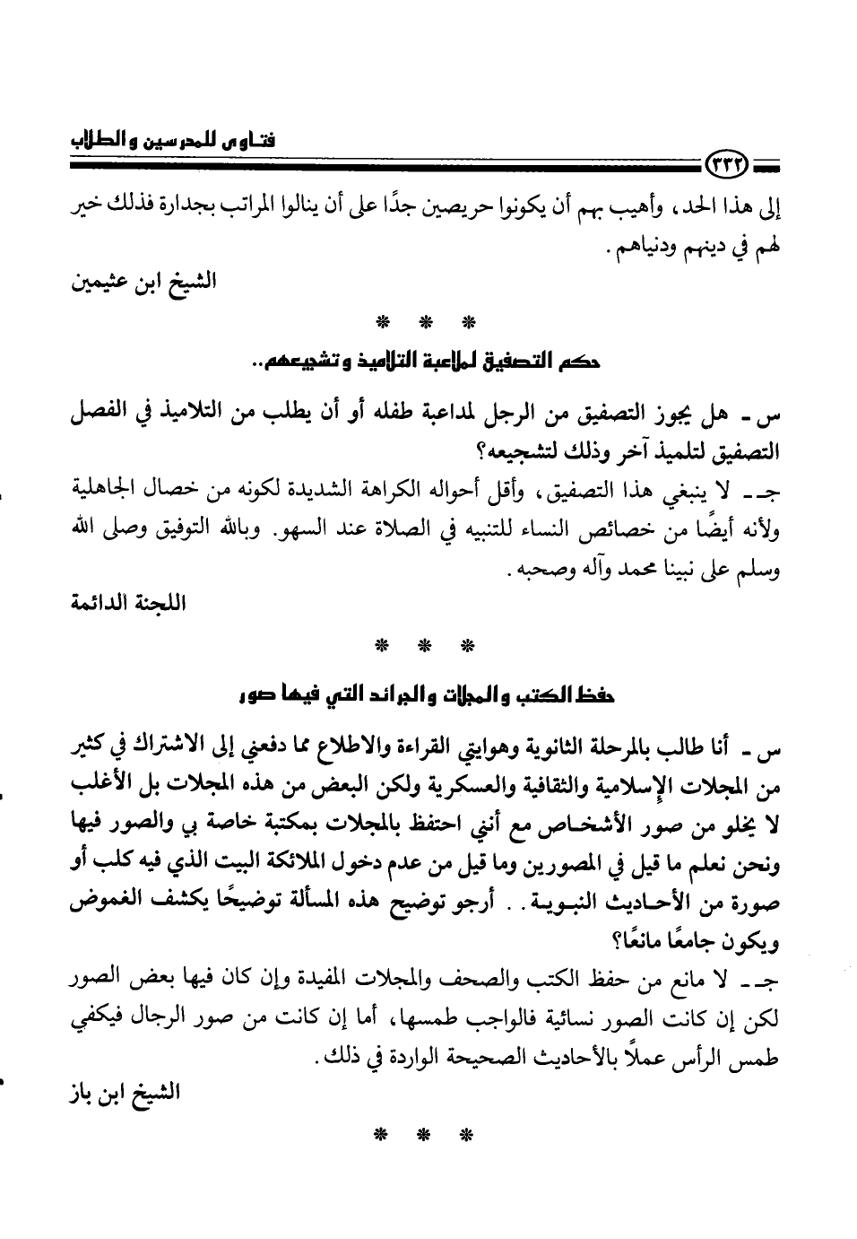 س - هل يجوز التصفيق من الرجل لمداعبة طفله أو أن يطلب من التلاميذ في الفصل التصيفق لتلميذ آخر وذلك لتشجيعه؟