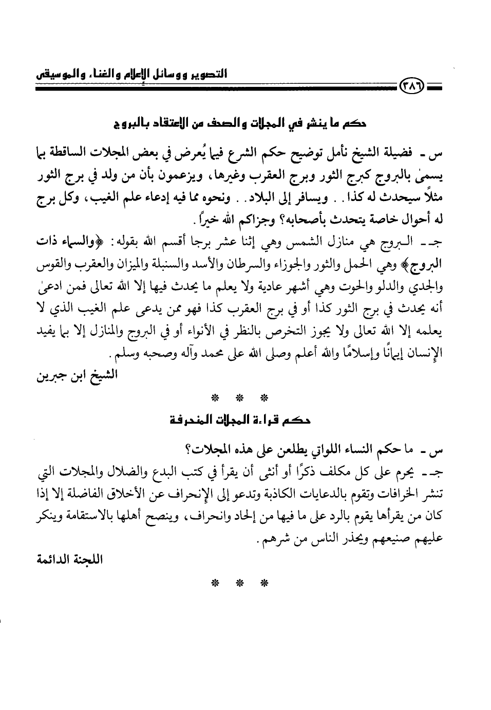 ج- يحرم على كل مكلف ذكراً أو أنثى أن يقرأ في كتب البدع والضلال والمجلات التي تنشر الخرافات وتقوم بالدعايات الكاذبة وتدعو إلى الإنحراف عن الأخلاق الفاضلة إلا إذا كان من يقرأها يقوم بالرد على ما فيها من إلحاد وانحراف، وينصح أهلها بالاستقامة وينكر عليهم صنيعهم ويحذر الناس من شرهم.