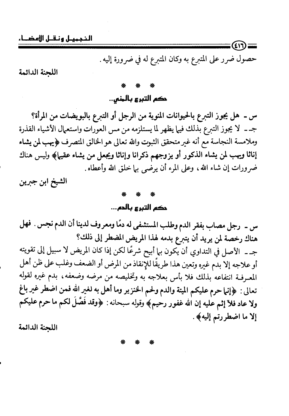 س - هل يجوز التبرع بالحيوانات المنوية من الرجل أو التبرع بالبويضات من المرأة؟