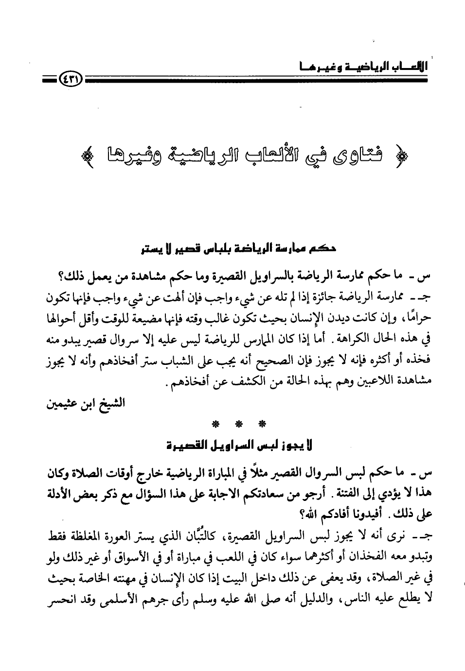 {فتاوى في الألعاب الرياضية وغيرها}