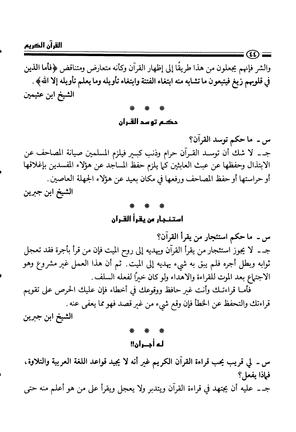 س - لي قريب يحب قراءة القرآن الكريم غير أنه لا يجيد قواعد اللغة العربية التلاوة، فماذا يفعل؟