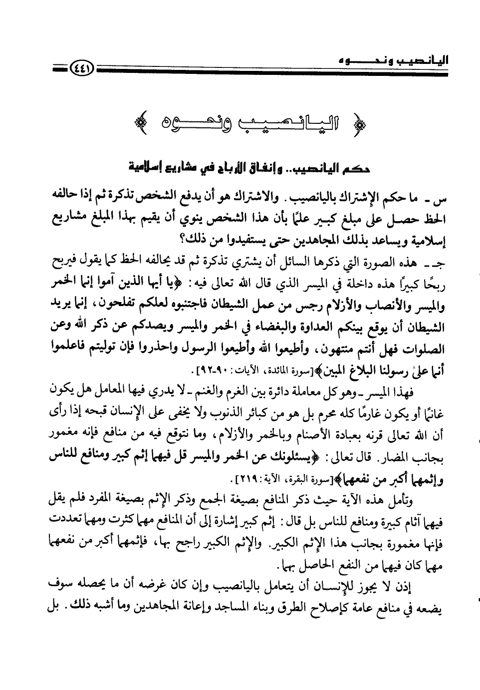 حكم اليانصيب.. وإنفاق الأرباح في مشاريع إسلامية