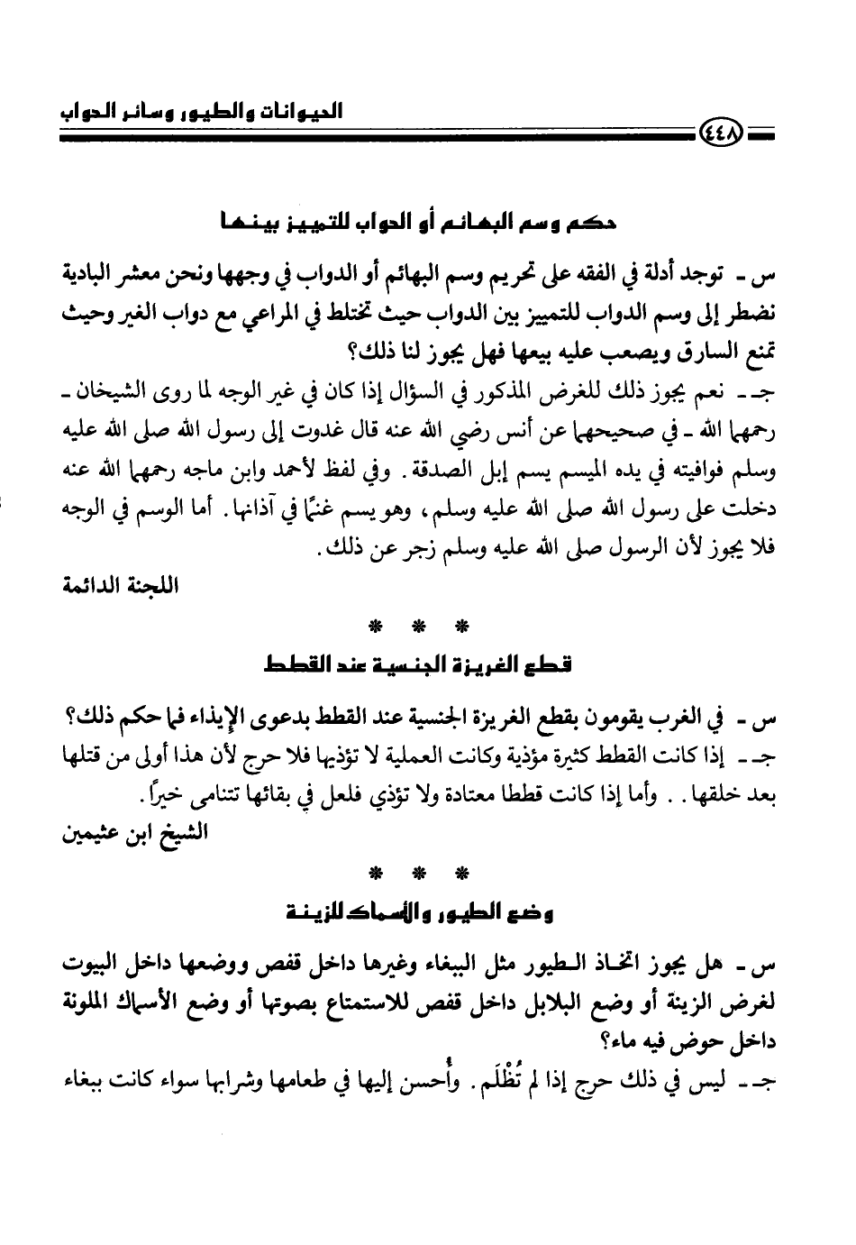 س - هل يجوز اتخاذ الطيور مثل الببغاء وغيرها داخل قفص داخل البيوت لغرض الزينة أو وضع البلابل داخل حوص فيه ماء؟