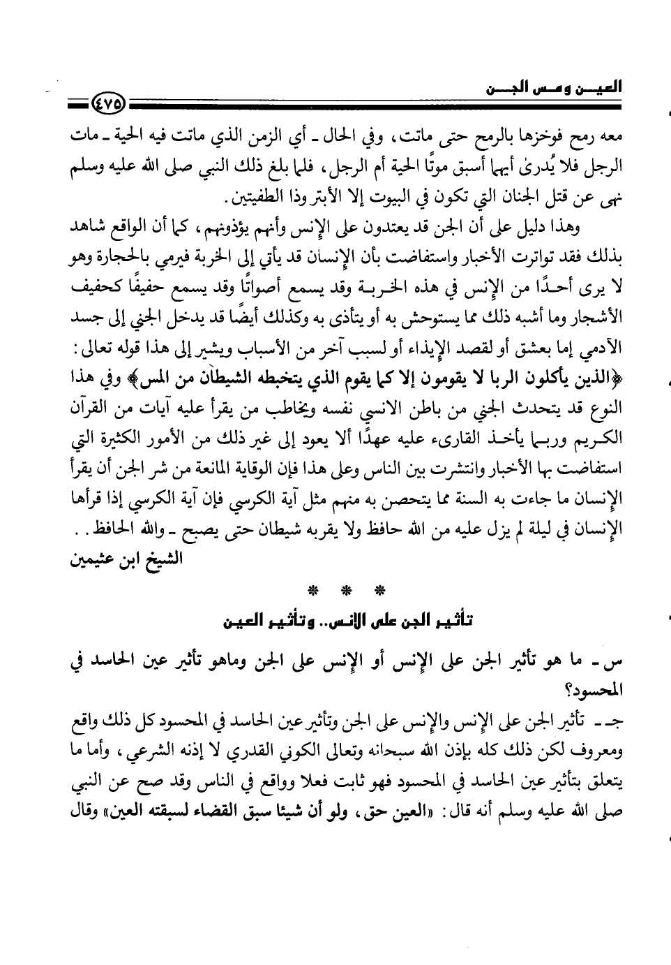 س - ما هو تأثير الجن على الإنس أو الإنس على الجن وما هو تأثير عين حاسد في المحسود؟