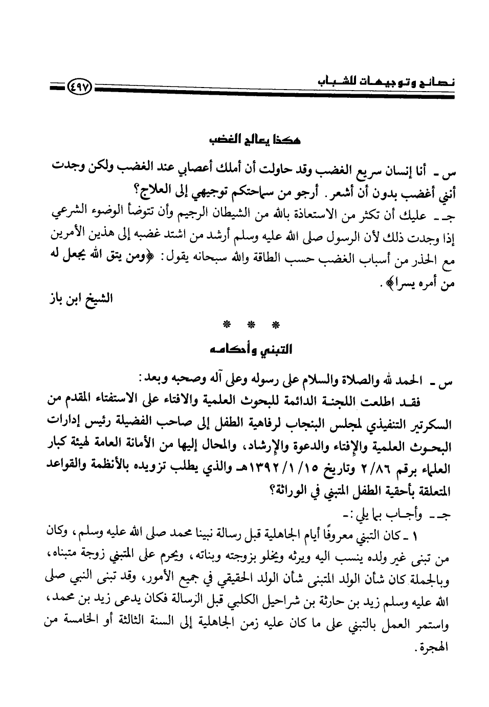 فقد اطلعت اللجنة الدائمة للبحوث العلمية والافتاء المقدم من السكرتير التنفيذي لمجلس البنجاب لرفاهية الطفل إلى صاحب الفضيلة رئيس إدارات البحوث العلمية والإفتاء والدعوة والإرشاد، والمحال إليها من الأمانة العامة لهيئة كبار العلماء برقم 86 2 وتاريخ 15 1 1392هـ والذي يطلب تزويده بالأنظمة والقواعد المتعلقة بأحقية الطفل المتبني في الوراثة؟