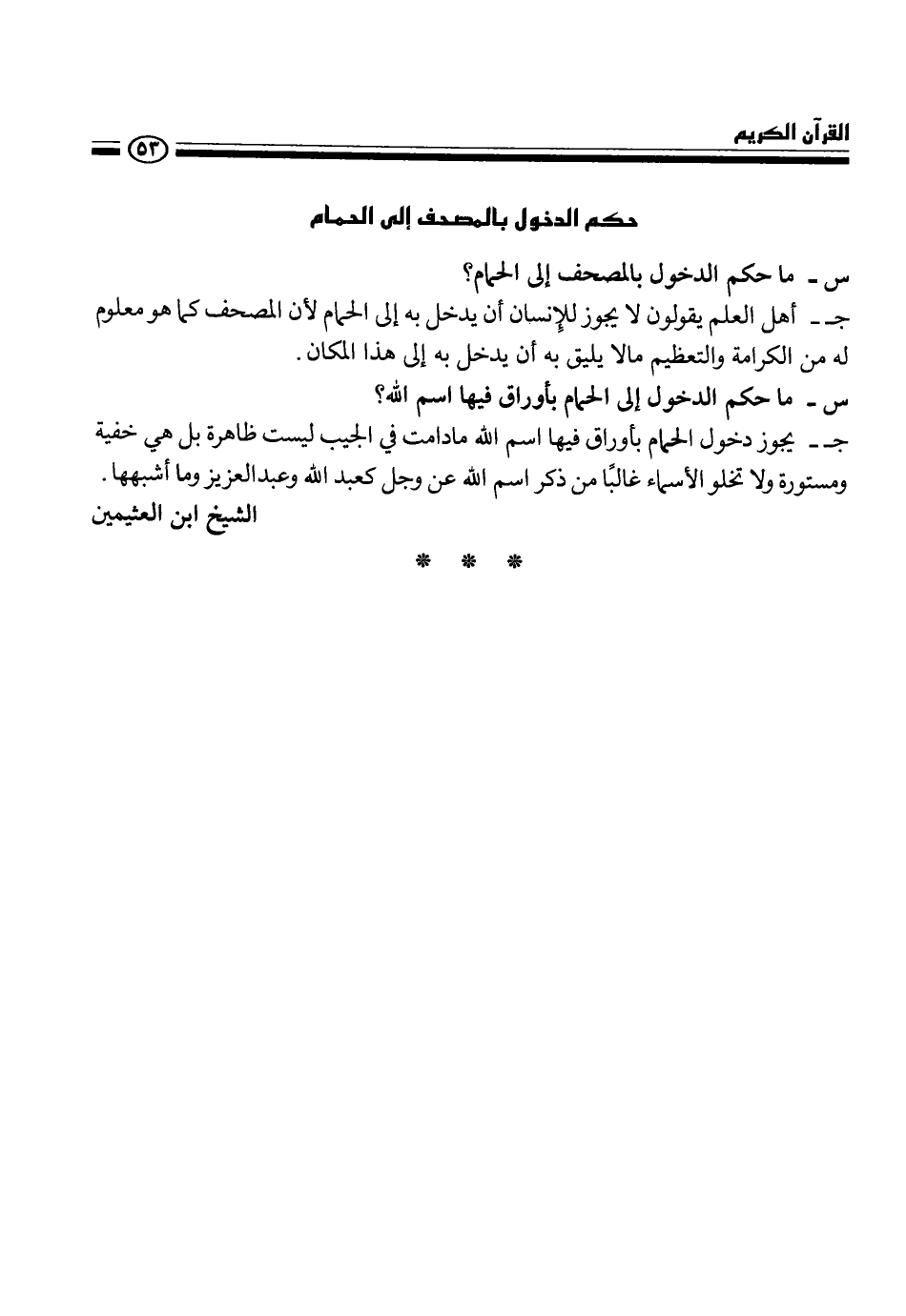س - ما حكم الدخول بالمصحف إلى الحمام؟