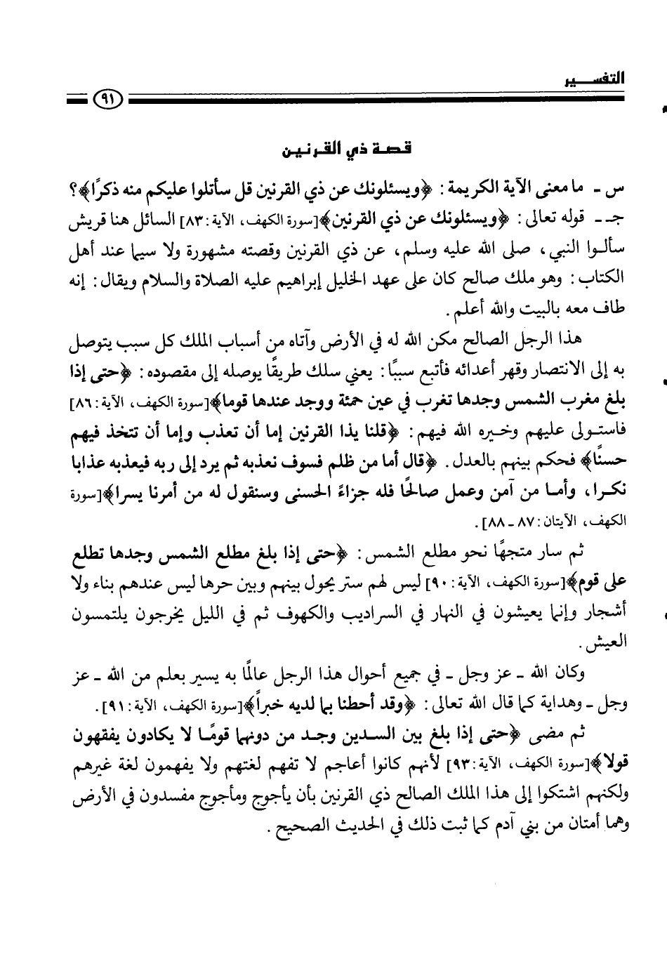 س - ما معنى الآية الكريمة {ويسئلونك عن ذي القرنين قل سأتلوا عليكم منه ذكراً} ؟