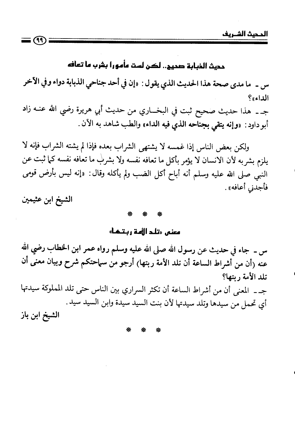 س - ما مدى صحة هذا الحديث الذي يقول {إن في أحد جناحي الذبابة دواء وفي الآخر الداء} ؟