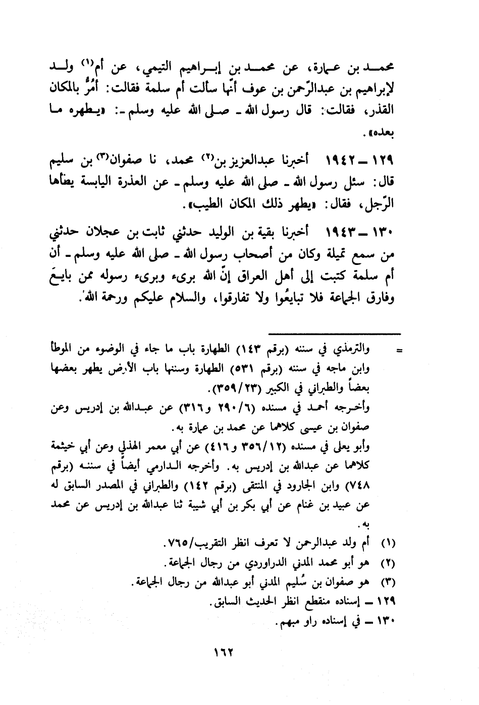 1942 - أَخْبَرَنَا عَبْدُ الْعَزِيزِ بْنُ مُحَمَّدٍ، نا صَفْوَانُ بْنُ سُلَيْمٍ قَالَ: سُئِلَ رَسُولُ اللَّهِ صَلَّى اللهُ عَلَيْهِ وَسَلَّمَ عَنِ §الْعُذْرَةِ الْيَابِسَةِ يَطَأُهَا الرَّجُلُ فَقَالَ: «يُطَهِّرُ ذَلِكَ الْمَكَانُ الطَّيِّبُ»