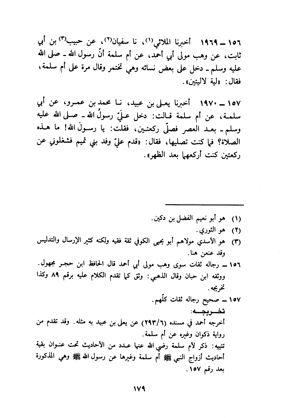 1969 - أَخْبَرَنَا الْمُلَائِيُّ، نا سُفْيَانُ، عَنْ حَبِيبِ بْنِ أَبِي ثَابِتٍ، عَنْ وَهْبٍ مَوْلَى أَبِي أَحْمَدَ، عَنْ أُمِّ سَلَمَةَ: " أَنَّ رَسُولَ اللَّهِ صَلَّى اللهُ عَلَيْهِ وَسَلَّمَ §دَخَلَ عَلَى بَعْضِ نِسَائِهِ وَهِيَ تَخْتَمِرُ وَقَالَ مَرَّةً عَلَى أُمِّ سَلَمَةَ، فَقَالَ: «لَيَّةً لَا لَيَّتَيْنِ»