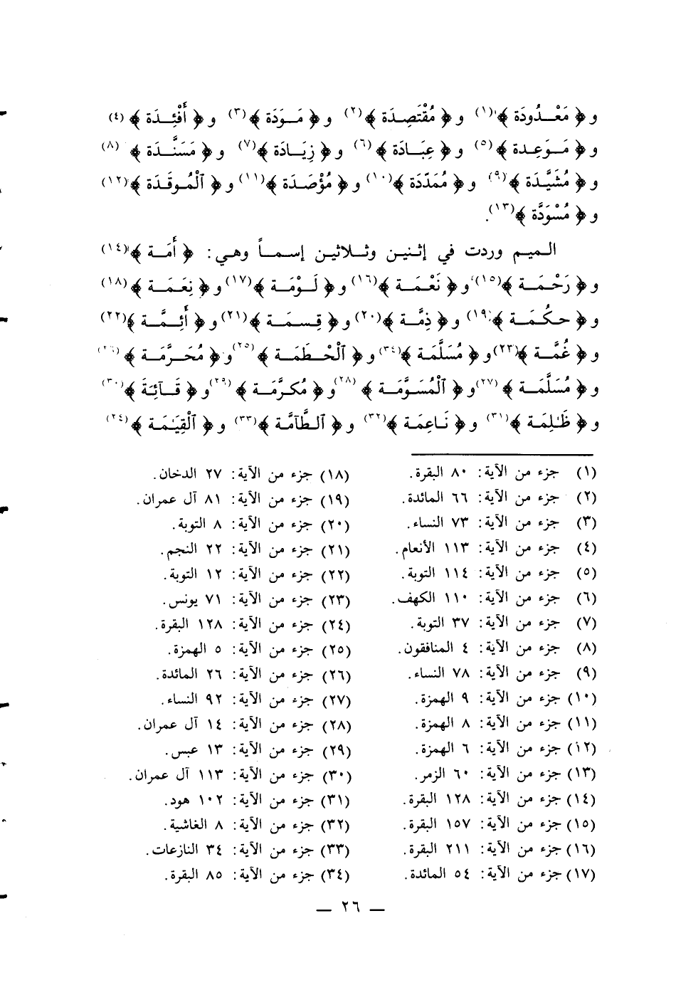 الميم وردت في إثنين وثلاثين اسماً وهي: {أَمَة} (¬14) و {رَحْمَة} (¬15): و {نَعْمَة} (¬16) و {لَوْمَة} (¬17) و {نِعَمَة} (¬18) و {حكُمَة} (¬19) و {ذِمَّة} (¬20) و {قِسمَة} (¬21) و {أَئِمَّة} (¬22) و {غُمَّة} (¬23) و {مُسَلَّمَة} (¬24) و {الْحْطَمَة} (¬25) و {مُحَرَّمَة} (¬26) و {مُسَلَّمَة} (¬27) و {الْمُسَوَّمَة} (¬28) و {مُكرَّمَة} (¬29) و {قَائِمَةٌ} (¬30) و {ظَلِمَة} (¬31) و {نَاعِمَة} (¬32) و {الطَّآمَّة} (¬33) و {الْقِيَمَة} (¬34)