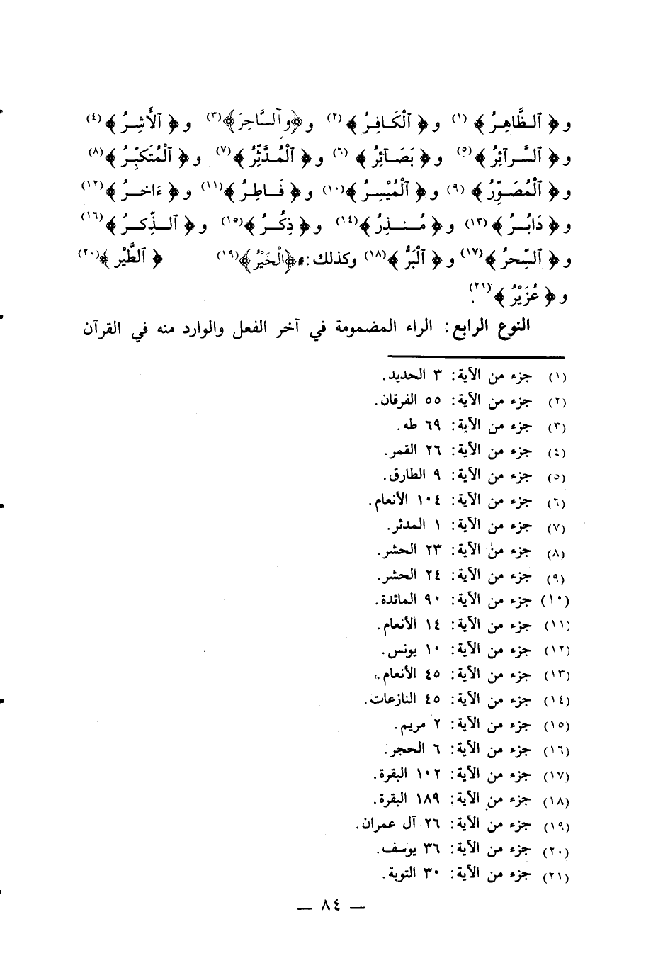 و {وَالظَّاهِرُ} (¬1) و {الْكَافِرُ} (¬2) و {السَّاحِرُ} (¬3) و {الْأَشِرُ} (¬4) و {السَّرَائِرُ} (¬5) و {بَصَائِرُ} (¬6) و {الْمُدَّثِّرُ} (¬7) و {الْمُتَكَبِّرُ} (¬8) و {الْمُصَوِّرُ} (¬9) و {وَالْمَيْسِرُ} (¬10) و {فَاطِرُ} (¬11) و {وَآخَرُ} (¬12) و {دَابِرُ} (¬13) و {مُنْذِرُ} (¬14) و {ذِكُرُ} (¬15) و {الذِّكْرُ} (¬16) و {السِّحْرُ} (¬17) و {الْبَرُّ} (¬18) وكذلك: {الْخَيْرُ} (¬19) {الطَّيْرَ} (¬20) و {عُزَيْرٌ} (¬21)