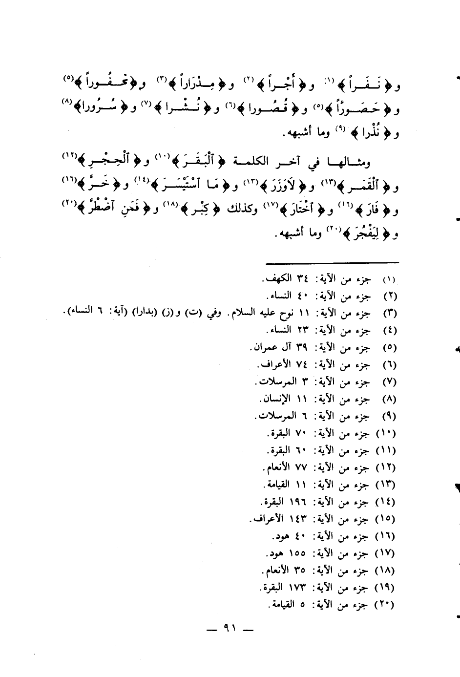 و {نَفَرًا} (¬1) و {أَجْرًا} (¬2) و {مِدْرَارًا} (¬3) و {غَفُورًا} (¬4) و {وَحَصُورًا} (¬5) و {قُصُورًا} (¬6) و {نَشْرًا} (¬7) و {وَسُرُورًا} (¬8) و {نُذْرًا} (¬9) وما أشبهه.