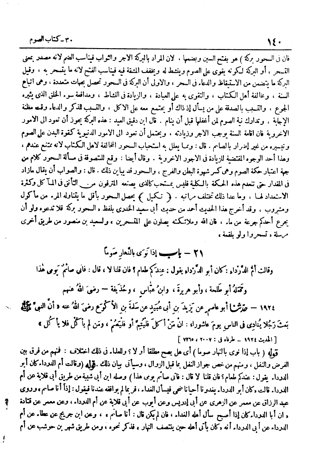 أَيْ هَلْ يَصِحُّ مُطْلَقًا أَوْ لَا وَلِلْعُلَمَاءِ فِي ذَلِكَ اخْتِلَافٌ فَمِنْهُمْ مَنْ فَرَّقَ بَيْنَ الْفَرْضِ وَالنَّفْلِ وَمِنْهُمْ مَنْ خَصَّ جَوَازَ النَّفْلِ بِمَا قَبْلَ الزَّوَالِ وَسَيَأْتِي بَيَانُ ذَلِكَ قَوْلُهُ وَقَالَتْ أُمُّ الدَّرْدَاءِ كَانَ أَبُو الدَّرْدَاءِ يَقُولُ عِنْدَكُمْ طَعَامٌ فَإِنْ قُلْنَا لَا قَالَ فَإِنِّي صَائِمٌ يومى هَذَا وَصله بن أَبِي شَيْبَةَ مِنْ طَرِيقِ أَبِي قِلَابَةَ عَنْ أُمِّ الدَّرْدَاءِ قَالَتْ كَانَ أَبُو الدَّرْدَاءِ يَغْدُونَا أَحْيَانًا ضُحًى فَيَسْأَلُ الْغَدَاءَ فَرُبَّمَا لَمْ يُوَافِقْهُ عِنْدَنَا فَيَقُولُ إِذًا أَنَا صَائِمٌ وَرَوَى عَبْدِ الرَّزَّاقِ عَنْ مَعْمَرٍ عَنِ الزُّهْرِيِّ عَنْ أَبِي إِدْرِيسَ وَعَنْ أَيُّوبَ عَنْ أَبِي قِلَابَةَ عَنْ أُمِّ الدَّرْدَاءِ وَعَنْ مَعْمَرٍ عَنْ قَتَادَةَ أَنَّ أَبَا الدَّرْدَاءِ كَانَ إِذَا أَصْبَحَ سَأَلَ أَهْلَهُ الْغَدَاءَ فَإِنْ لَمْ يَكُنْ قَالَ أَنَا صَائِمٌ وَعَن بن جُرَيْجٍ عَنْ عَطَاءٍ عَنْ أُمِّ الدَّرْدَاءِ عَنْ أَبِي الدَّرْدَاءِ أَنَّهُ كَانَ يَأْتِي أَهْلَهُ حِينَ يَنْتَصِفُ النَّهَارُ فَذَكَرَ نَحْوَهُ وَمِنْ طَرِيقِ شَهْرِ بْنِ حَوْشَبٍ عَنْ أُمِّ