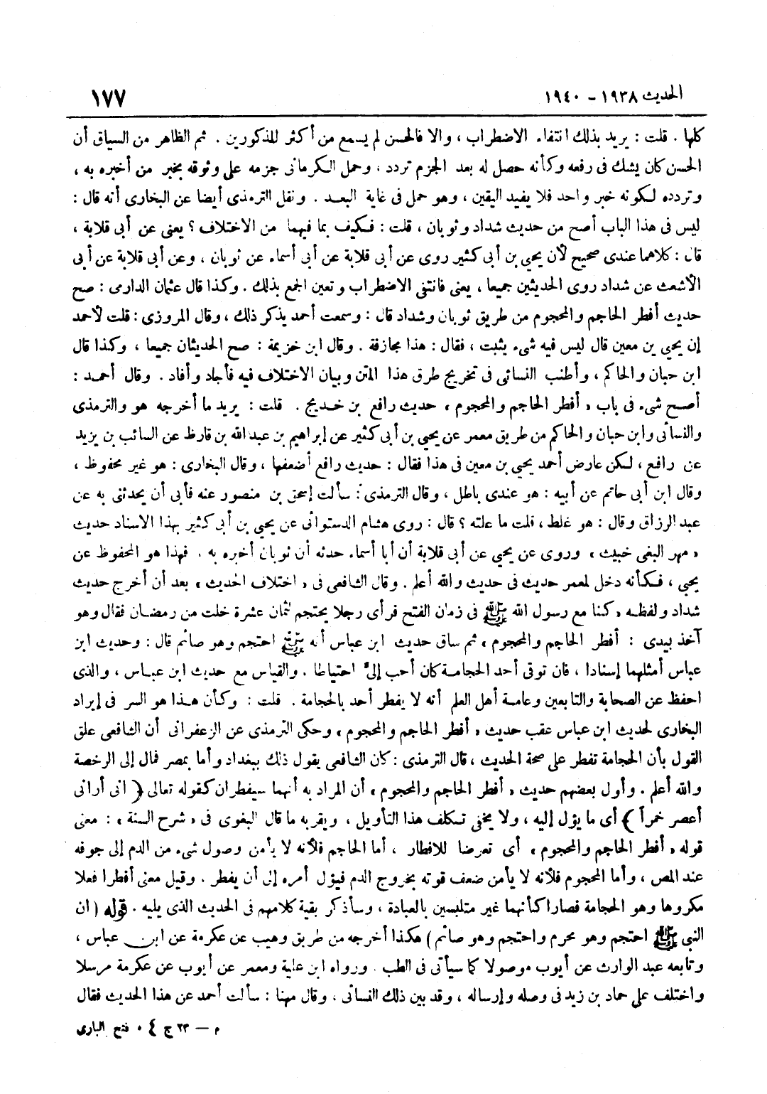 كُلُّهَا قُلْتُ يُرِيدُ بِذَلِكَ انْتِفَاءَ الِاضْطِرَابِ وَإِلَّا فالحسن لم يسمع من أَكثر للمذكورين ثُمَّ الظَّاهِرُ مِنَ السِّيَاقِ أَنَّ الْحَسَنَ كَانَ يَشُكُّ فِي رَفْعِهِ وَكَأَنَّهُ حَصَلَ لَهُ بَعْدَ الْجَزْمِ تَرَدُّدٌ وَحَمَلَ الْكِرْمَانِيُّ جَزْمَهُ عَلَى وُثُوقِهِ بِخَبَرِ مَنْ أَخْبَرَهُ بِهِ وَتَرَدُّدُهُ لِكَوْنِهِ خَبَرَ وَاحِدٍ فَلَا يُفِيدُ الْيَقِينَ وَهُوَ حَمْلٌ فِي غَايَةِ الْبُعْدِ وَنَقَلَ التِّرْمِذِيُّ أَيْضًا عَنِ الْبُخَارِيِّ أَنَّهُ قَالَ لَيْسَ فِي هَذَا الْبَابِ أَصَحُّ مِنْ حَدِيثِ شَدَّادٍ وَثَوْبَانَ قُلْتُ فَكَيْفَ بِمَا فِيهِمَا مِنَ الِاخْتلَافِ يَعْنِي عَنْ أَبِي قِلَابَةَ قَالَ كِلَاهُمَا عِنْدِي صَحِيحٌ لِأَنَّ يَحْيَى بْنَ أَبِي كَثِيرٍ رَوَى عَنْ أَبِي قِلَابَةَ عَنْ أَبِي أَسْمَاءَ عَنْ ثَوْبَانَ وَعَنْ أَبِي قِلَابَةَ عَنْ أَبِي الْأَشْعَثِ عَنْ شَدَّادٍ رَوَى الْحَدِيثَيْنِ جَمِيعًا يَعْنِي فَانْتَفَى الِاضْطِرَابُ وَتَعَيَّنَ الْجَمْعُ بِذَلِكَ وَكَذَا قَالَ عُثْمَانُ الدَّارِمِيُّ صَحَّ حَدِيثُ أَفْطَرَ الْحَاجِمُ وَالْمَحْجُومُ مِنْ طَرِيقِ ثَوْبَانَ وَشَدَّادٍ قَالَ وَسَمِعْتُ أَحْمَدَ يَذْكُرُ ذَلِكَ وَقَالَ الْمَرْوَزِيُّ قُلْتُ لِأَحْمَدَ إِنَّ يَحْيَى بْنَ مَعِينٍ قَالَ لَيْسَ فِيهِ شَيْءٌ يَثْبُتُ فَقَالَ هَذَا مُجَازَفَةٌ وَقَالَ بن خُزَيْمَة صَحَّ الحديثان جَمِيعًا وَكَذَا قَالَ بن حِبَّانَ وَالْحَاكِمُ وَأَطْنَبَ النَّسَائِيُّ فِي تَخْرِيجِ طُرُقِ هَذَا الْمَتْنِ وَبَيَانِ الِاخْتِلَافِ فِيهِ فَأَجَادَ وَأَفَادَ وَقَالَ أَحْمَدُ أَصَحُّ شَيْءٍ فِي بَابِ أَفْطَرَ الْحَاجِمُ وَالْمَحْجُومُ حَدِيثُ رَافِعِ بْنِ خَدِيجٍ قُلْتُ يُرِيد مَا أخرجه هُوَ وَالتِّرْمِذِيّ وَالنَّسَائِيّ وبن حِبَّانَ وَالْحَاكِمُ مِنْ طَرِيقِ مَعْمَرٍ عَنْ يَحْيَى بْنِ أَبِي كَثِيرٍ عَنْ إِبْرَاهِيمَ بْنِ عَبْدِ اللَّهِ بْنِ قَارِظٍ عَنِ السَّائِبِ بْنِ يَزِيدَ عَنْ رَافِعٍ لَكِنْ عَارَضَ أَحْمَدَ يَحْيَى بْنُ مَعِينٍ فِي هَذَا فَقَالَ حَدِيثُ رَافِعٌ أَضْعَفُهَا وَقَالَ البُخَارِيّ هُوَ غير مَحْفُوظ وَقَالَ بن أَبِي حَاتِمٍ عَنْ أَبِيهِ هُوَ عِنْدِي بَاطِلٌ وَقَالَ التِّرْمِذِيُّ سَأَلْتُ إِسْحَاقَ بْنَ مَنْصُورٍ عَنْهُ فَأَبِي أَنْ يُحَدِّثَنِي بِهِ عَنْ عَبْدِ الرَّزَّاقِ وَقَالَ هُوَ غَلَطٌ قُلْتُ مَا عِلَّتُهُ قَالَ رَوَى هِشَامٍ الدَّسْتُوَائِيِّ عَنْ يَحْيَى بْنِ أَبِي كَثِيرٍ بِهَذَا الْإِسْنَادِ حَدِيثَ مَهْرُ الْبَغِيِّ خَبِيثٌ وَرَوَى عَنْ يَحْيَى عَنْ أَبِي قِلَابَةَ أَنَّ أَبَا أَسْمَاءَ حَدَّثَهُ أَنَّ ثَوْبَانَ أَخْبَرَهُ بِهِ فَهَذَا هُوَ الْمَحْفُوظُ عَنْ يَحْيَى فَكَأَنَّهُ دَخَلَ لِمَعْمَرٍ حَدِيثٌ فِي حَدِيثٍ وَاللَّهُ أَعْلَمُ وَقَالَ الشَّافِعِيُّ فِي اخْتِلَافِ الْحَدِيثِ بَعْدَ أَنْ أَخْرَجَ حَدِيثَ شَدَّادٍ وَلَفْظُهُ كُنَّا مَعَ رَسُولِ اللَّهِ صَلَّى اللَّهُ عَلَيْهِ وَسَلَّمَ فِي زَمَانِ الْفَتْحِ فَرَأَى رَجُلًا يَحْتَجِمُ لِثَمَانِ عَشْرَةَ خَلَتْ مِنْ رَمَضَانَ فَقَالَ وَهُوَ آخِذٌ بِيَدِي أَفْطَرَ الْحَاجِمُ والمحجوم ثمَّ سَاق حَدِيث بن عَبَّاسٍ أَنَّهُ صَلَّى اللَّهُ عَلَيْهِ وَسَلَّمَ احْتَجَمَ وَهُوَ صَائِمٌ قَالَ وَحَدِيث بن عَبَّاسٍ أَمْثَلُهُمَا إِسْنَادًا فَإِنْ تَوَقَّى أَحَدٌ الْحِجَامَةَ كَانَ أَحَبَّ إِلَيَّ احْتِيَاطًا وَالْقِيَاسُ مَعَ حَدِيثِ بن عَبَّاسٍ وَالَّذِي أَحْفَظُ عَنِ الصَّحَابَةِ وَالتَّابِعِينَ وَعَامَّةِ أَهْلِ الْعِلْمِ أَنَّهُ لَا يُفْطِرُ أَحَدٌ بِالْحِجَامَةِ قُلْتُ وَكَأَنَّ هَذَا هُوَ السِّرُّ فِي إِيرَادِ الْبُخَارِيِّ لِحَدِيثِ بن عَبَّاسٍ عَقِ