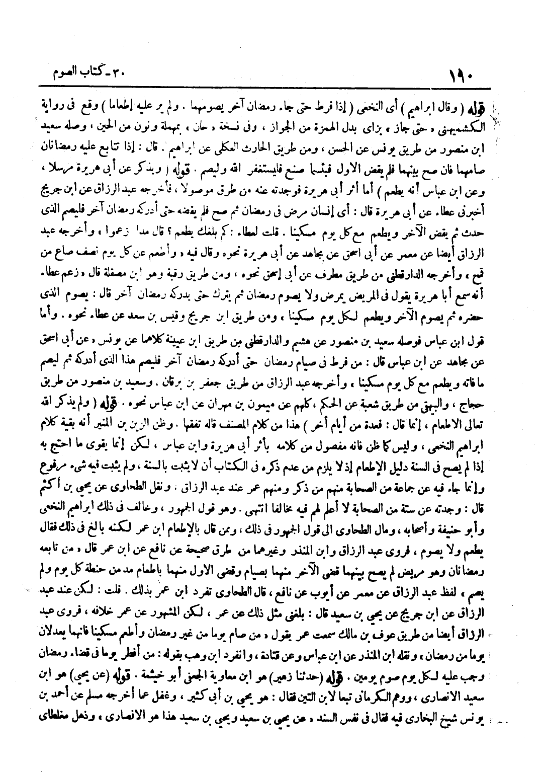 قَوْلُهُ وَقَالَ إِبْرَاهِيمُ أَيِ النَّخَعِيُّ إِذَا فَرَّطَ حَتَّى جَاءَ رَمَضَانُ آخَرُ يَصُومُهُمَا وَلَمْ يَرَ عَلَيْهِ إِطْعَامًا وَقَعَ فِي رِوَايَةِ الْكُشْمِيهَنِيِّ حَتَّى جَازَ بِزَايٍ بَدَلَ الْهَمْزَةِ مِنَ الْجَوَازِ وَفِي نُسْخَةٍ حَانَ بِمُهْمَلَةٍ وَنُونٍ مِنَ الْحَيْنِ وَصَلَهُ سَعِيدُ بْنُ مَنْصُورٍ مِنْ طَرِيقِ يُونُسَ عَنِ الْحَسَنِ وَمِنْ طَرِيقِ الْحَارِثِ الْعُكْلِيِّ عَنْ إِبْرَاهِيمَ قَالَ إِذَا تَتَابَعَ عَلَيْهِ رَمَضَانَانِ صَامَهُمَا فَإِنْ صَحَّ بَيْنَهُمَا فَلَمْ يَقْضِ الْأَوَّلَ فَبِئْسَمَا صَنَعَ فَلْيَسْتَغْفِرِ اللَّهَ وَلْيَصُمْ قَوْلُهُ وَيُذْكَرُ عَنْ أَبِي هُرَيْرَة مُرْسلا وَعَن بن عَبَّاسٍ أَنَّهُ يُطْعِمُ أَمَّا أَثَرُ أَبِي هُرَيْرَةَ فَوَجَدْتُهُ عَنْهُ مِنْ طُرُقٍ مَوْصُولًا فَأَخْرَجَهُ عَبْدُ الرَّزَّاق عَن بن جُرَيْجٍ أَخْبَرَنِي عَطَاءٌ عَنْ أَبِي هُرَيْرَةَ قَالَ أَيُّ إِنْسَانٍ مَرِضَ فِي رَمَضَانَ ثُمَّ صَحَّ فَلَمْ يَقْضِهِ حَتَّى أَدْرَكَهُ رَمَضَانُ آخَرُ فَلْيَصُمِ الَّذِي حَدَثَ ثُمَّ يَقْضِ الْآخَرَ وَيُطْعِمْ مَعَ كُلِّ يَوْمٍ مِسْكِينًا قُلْتُ لِعَطَاءٍ كَمْ بَلَغَكَ يُطْعِمُ قَالَ مُدًّا زَعَمُوا وَأَخْرَجَهُ عَبْدُ الرَّزَّاقِ أَيْضًا عَنْ مَعْمَرٍ عَنْ أَبِي إِسْحَاقَ عَنْ مُجَاهِدٍ عَنْ أَبِي هُرَيْرَةَ نَحْوَهُ وَقَالَ فِيهِ وَأَطْعِمْ عَنْ كُلِّ يَوْمٍ نِصْفَ صَاعٍ مِنْ قَمْحٍ وَأَخْرَجَهُ الدَّارَقُطْنِيُّ مِنْ طَرِيقِ مُطَرِّفٍ عَنْ أَبِي إِسْحَاقَ نَحْوَهُ وَمِنْ طَرِيقِ رَقَبَةَ وَهُوَ بن مِصْقَلَةَ قَالَ زَعَمَ عَطَاءٌ أَنَّهُ سَمِعَ أَبَا هُرَيْرَةَ يَقُولُ فِي الْمَرِيضِ يَمْرَضُ وَلَا يَصُومُ رَمَضَانَ ثُمَّ يَتْرُكُ حَتَّى يُدْرِكَهُ رَمَضَانُ آخَرُ قَالَ يَصُومُ الَّذِي حَضَرَهُ ثُمَّ يَصُومُ الْآخَرَ وَيطْعم لكل يَوْم مِسْكينا وَمن طَرِيق بن جُرَيْجٍ وَقَيْسِ بْنِ سَعْدٍ عَنْ عَطَاءٍ نَحْوُهُ وَأما قَول بن عَبَّاسٍ فَوَصَلَهُ سَعِيدُ بْنُ مَنْصُورٍ عَنْ هُشَيْمٍ وَالدَّارَقُطْنِيّ من طَرِيق بن عُيَيْنَةَ كِلَاهُمَا عَنْ يُونُسَ عَنْ أَبِي إِسْحَاقَ عَن مُجَاهِد عَن بن عَبَّاسٍ قَالَ مَنْ فَرَّطَ فِي صِيَامِ رَمَضَانَ حَتَّى أَدْرَكَهُ رَمَضَانُ آخَرُ فَلْيَصُمْ هَذَا الَّذِي أدْركهُ ثُمَّ لْيَصُمْ مَا فَاتَهُ وَيُطْعِمْ مَعَ كُلِّ يَوْمٍ مِسْكِينًا وَأَخْرَجَهُ عَبْدُ الرَّزَّاقِ مِنْ طَرِيقِ جَعْفَرِ بْنِ بَرْقَانَ وَسَعِيدُ بْنُ مَنْصُورٍ مِنْ طَرِيقِ حَجَّاجٍ وَالْبَيْهَقِيُّ مِنْ طَرِيقِ شُعْبَةَ عَنِ الْحَكَمِ كُلُّهُمْ عَنْ مَيْمُونِ بْنِ مِهْرَانَ عَنِ بن عَبَّاسٍ نَحْوُهُ قَوْلُهُ وَلَمْ يَذْكُرِ اللَّهُ تَعَالَى الْإِطْعَامَ إِنَّمَا قَالَ فَعِدَّةٌ مِنْ أَيَّامٍ أُخَرَ هَذَا مِنْ كَلَامِ الْمُصَنِّفِ قَالَهُ تَفَقُّهًا وَظَنَّ الزَّيْنُ بْنُ الْمُنِيرِ أَنَّهُ بَقِيَّةُ كَلَامِ إِبْرَاهِيمَ النَّخَعِيِّ وَلَيْسَ كَمَا ظَنَّ فَإِنَّهُ مَفْصُولٌ مِنْ كَلَامه بأثر أبي هُرَيْرَة وبن عَبَّاسٍ لَكِنْ إِنَّمَا يَقْوَى مَا احْتَجَّ بِهِ إِذَا لَمْ يَصِحَّ فِي السُّنَّةِ دَلِيلُ الْإِطْعَامِ إِذْ لَا يَلْزَمُ مِنْ عَدَمِ ذِكْرِهِ فِي الْكِتَابِ أَنْ لَا يَثْبُتَ بِالسُّنَّةِ وَلَمْ يَثْبُتْ فِيهِ شَيْءٌ مَرْفُوعٌ وَإِنَّمَا جَاءَ فِيهِ عَنْ جَمَاعَةٍ مِنَ الصَّحَابَةِ مِنْهُمْ مَنْ ذُكِرَ وَمِنْهُمْ عُمَرُ عِنْدَ عَبْدِ الرَّزَّاقِ وَنَقَلَ الطَّحَاوِيُّ عَنْ يَحْيَى بْنِ أَكْثَمَ قَالَ وَجَدْتُهُ عَنْ سِتَّةٍ مِنَ الصَّحَابَةِ لَا أَعْلَمُ لَهُمْ فِيهِ مُخَالِفًا انْتَهَى وَهُوَ قَوْلُ الْجُمْهُورِ وَخَالَفَ فِي ذَلِكَ إِبْرَاهِيمُ النَّخَعِيُّ وَأَبُو حَنِيفَةَ 