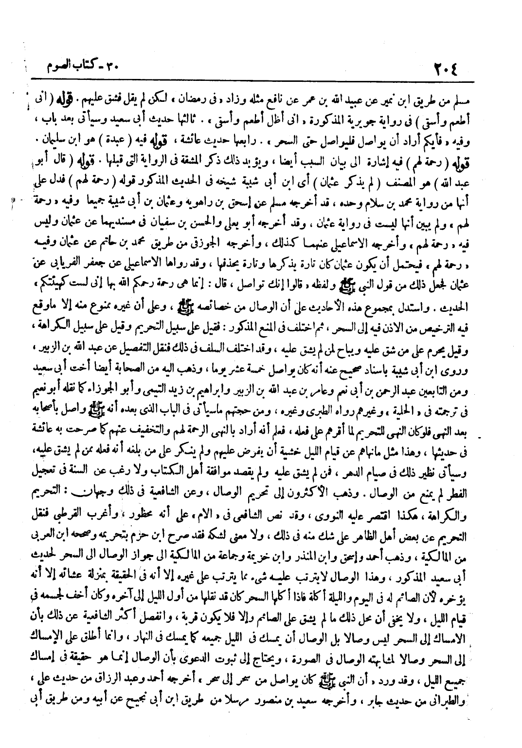 [1964] قَوْله فِيهِ عَبدة هُوَ بن سُلَيْمَانَ قَوْلُهُ رَحْمَةً لَهُمْ فِيهِ إِشَارَةٌ إِلَى بَيَانِ السَّبَبِ أَيْضًا وَيُؤَيِّدُ ذَلِكَ ذِكْرُ الْمَشَقَّةِ فِي الرِّوَايَةِ الَّتِي قَبْلَهَا قَوْلُهُ قَالَ أَبُو عَبْدِ اللَّهِ هُوَ الْمُصَنِّفُ لَمْ يَذْكُرْ عُثْمَانُ أَي بن أَبِي شَيْبَةَ شَيْخَهُ فِي الْحَدِيثِ الْمَذْكُورِ قَوْلُهُ رَحْمَةً لَهُمْ فَدَلَّ عَلَى أَنَّهَا مِنْ رِوَايَةِ مُحَمَّدِ بْنِ سَلَامٍ وَحْدَهُ قَدْ أَخْرَجَهُ مُسْلِمٌ عَنْ إِسْحَاقَ بْنِ رَاهْوَيْهِ وَعُثْمَانَ بْنَ أَبِي شَيْبَةَ جَمِيعًا وَفِيهِ رَحْمَةً لَهُمْ وَلَمْ يُبَيِّنْ أَنَّهَا لَيْسَتْ فِي رِوَايَةِ عُثْمَانَ وَقَدْ أَخْرَجَهُ أَبُو يَعْلَى وَالْحَسَنُ بْنُ سُفْيَانَ فِي مُسْنَدِيهِمَا عَنْ عُثْمَانَ وَلَيْسَ فِيهِ رَحْمَةً لَهُمْ وَأَخْرَجَهُ الْإِسْمَاعِيلِيُّ عَنْهُمَا كَذَلِكَ وَأَخْرَجَهُ الْجَوْزَقِيُّ مِنْ طَرِيقِ مُحَمَّدِ بْنِ حَاتِمٍ عَنْ عُثْمَانَ وَفِيهِ رَحْمَةً لَهُمْ فَيُحْتَمَلُ أَنْ يَكُونَ عُثْمَانُ كَانَ تَارَةً يَذْكُرُهَا وَتَارَةً يَحْذِفُهَا وَقَدْ رَوَاهَا الْإِسْمَاعِيلِيُّ عَنْ جَعْفَرٍ الْفِرْيَابِيِّ عَنْ عُثْمَانَ فَجَعَلَ ذَلِكَ مِنْ قَوْلِ النَّبِيِّ صَلَّى اللَّهُ عَلَيْهِ وَسَلَّمَ وَلَفْظُهُ قَالُوا إِنَّكَ تُوَاصِلُ قَالَ إِنَّمَا هِيَ رَحْمَةٌ رَحِمَكُمُ اللَّهُ بِهَا إِنِّي لَسْتُ كَهَيْئَتِكُمْ الْحَدِيثَ وَاسْتُدِلَّ بِمَجْمُوعِ هَذِهِ الْأَحَادِيثِ عَلَى أَنَّ الْوِصَالَ مِنْ خَصَائِصِهِ صَلَّى اللَّهُ عَلَيْهِ وَسَلَّمَ وَعَلَى أَنَّ غَيْرَهُ مَمْنُوعٌ مِنْهُ إِلَّا مَا وَقَعَ فِيهِ التَّرْخِيصُ مِنَ الْإِذْنِ فِيهِ إِلَى السَّحَرِ ثُمَّ اخْتُلِفَ فِي الْمَنْعِ الْمَذْكُورِ فَقِيلَ عَلَى سَبِيلِ التَّحْرِيمِ وَقِيلَ عَلَى سَبِيلِ الْكَرَاهَةِ وَقِيلَ يَحْرُمُ عَلَى مَنْ شَقَّ عَلَيْهِ وَيُبَاحُ لِمَنْ لَمْ يَشُقَّ عَلَيْهِ وَقَدِ اخْتَلَفَ السَّلَفُ فِي ذَلِكَ فَنُقِلَ التَّفْصِيلُ عَنْ عَبْدِ اللَّهِ بْنِ الزبير وروى بن أَبِي شَيْبَةَ بِإِسْنَادٍ صَحِيحٍ عَنْهُ أَنَّهُ كَانَ يُوَاصِلُ خَمْسَةَ عَشَرَ يَوْمًا وَذَهَبَ إِلَيْهِ مِنَ الصَّحَابَةِ أَيْضًا أُخْتُ أَبِي سَعِيدٍ وَمِنَ التَّابِعِينَ عَبْدُ الرَّحْمَنِ بْنُ أَبِي نُعْمٍ وَعَامِرُ بْنُ عَبْدِ اللَّهِ بْنِ الزُّبَيْرِ وَإِبْرَاهِيمُ بْنُ زَيْدٍ التَّيْمِيُّ وَأَبُو الْجَوْزَاءِ كَمَا نَقَلَهُ أَبُو نُعَيْمٍ فِي تَرْجَمَتِهِ فِي الْحِلْيَةِ وَغَيْرُهُمْ رَوَاهُ الطَّبَرِيُّ وَغَيْرُهُ وَمِنْ حُجَّتِهِمْ مَا سَيَأْتِي فِي الْبَابِ الَّذِي بَعْدَهُ أَنَّهُ صَلَّى اللَّهُ عَلَيْهِ وَسَلَّمَ وَاصَلَ بِأَصْحَابِهِ بَعْدَ النَّهْيِ فَلَوْ كَانَ النَّهْيُ لِلتَّحْرِيمِ لَمَا أَقَرَّهُمْ عَلَى فِعْلِهِ فَعُلِمَ أَنَّهُ أَرَادَ بِالنَّهْيِ الرَّحْمَةَ لَهُمْ وَالتَّخْفِيفَ عَنْهُمْ كَمَا صَرَّحَتْ بِهِ عَائِشَةُ فِي حَدِيثِهَا وَهَذَا مِثْلُ مَا نَهَاهُمْ عَنْ قِيَامِ اللَّيْلِ خَشْيَةَ أَنْ يُفْرَضَ عَلَيْهِمْ وَلَمْ يُنْكِرْ عَلَى مَنْ بَلَغَهُ أَنَّهُ فَعَلَهُ مِمَّنْ لَمْ يَشُقَّ عَلَيْهِ وَسَيَأْتِي نَظِيرُ ذَلِكَ فِي صِيَامِ الدَّهْرِ فَمَنْ لَمْ يَشُقَّ عَلَيْهِ وَلَمْ يَقْصِدْ مُوَافَقَةَ أَهْلِ الْكِتَابِ وَلَا رَغِبَ عَنِ السُّنَّةِ فِي تَعْجِيلِ الْفِطْرِ لَمْ يُمْنَعْ مِنَ الْوِصَالِ وَذَهَبَ الْأَكْثَرُونَ إِلَى تَحْرِيمِ الْوِصَالِ وَعَنِ الشَّافِعِيَّةِ فِي ذَلِكَ وَجْهَانِ التَّحْرِيمُ وَالْكَرَاهَةُ هَكَذَا اقْتَصَرَ عَلَيْهِ النَّوَوِيُّ وَقَدْ نَصَّ الشَّافِعِيُّ فِي الْأُمِّ عَلَى أَنَّهُ مَحْظُورٌ وَأَغْرَبَ الْقُرْطُبِيُّ فَنَقَلَ التَ
