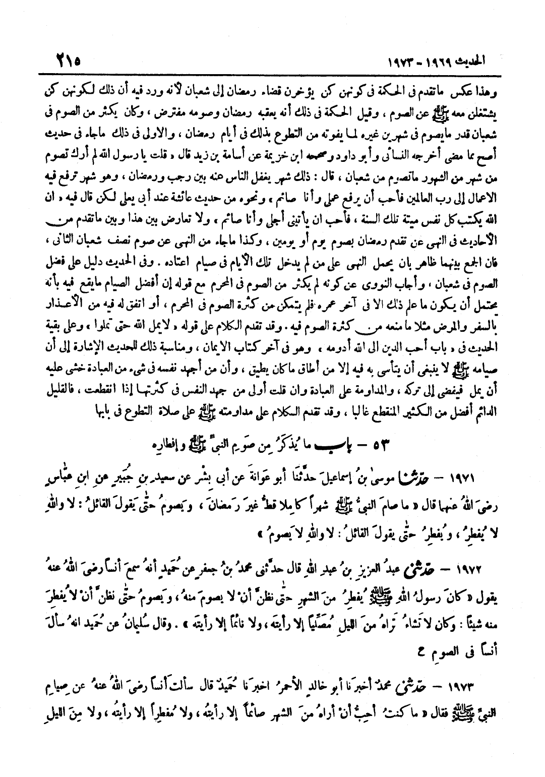 وَهَذَا عَكْسُ مَا تَقَدَّمَ فِي الْحِكْمَةِ فِي كَوْنِهِنَّ كُنَّ يُؤَخِّرْنَ قَضَاءَ رَمَضَانَ إِلَى شَعْبَانَ لِأَنَّهُ وَرَدَ فِيهِ أَنَّ ذَلِكَ لِكَوْنِهِنَّ كُنَّ يَشْتَغِلْنَ مَعَهُ صَلَّى اللَّهُ عَلَيْهِ وَسَلَّمَ عَنِ الصَّوْمِ وَقِيلَ الْحِكْمَةُ فِي ذَلِكَ أَنَّهُ يَعْقُبُهُ رَمَضَانُ وَصَوْمُهُ مُفْتَرَضٌ وَكَانَ يُكْثِرُ مِنَ الصَّوْمِ فِي شَعْبَانَ قَدْرَ مَا يَصُومُ فِي شَهْرَيْنِ غَيْرِهِ لِمَا يَفُوتُهُ مِنَ التَّطَوُّعِ بِذَلِكَ فِي أَيَّامِ رَمَضَانَ وَالْأَوْلَى فِي ذَلِكَ مَا جَاءَ فِي حَدِيثٍ أَصَحَّ مِمَّا مَضَى أَخْرَجَهُ النَّسَائِيُّ وَأَبُو دَاوُد وَصَححهُ بن خُزَيْمَةَ عَنْ أُسَامَةَ بْنِ زَيْدٍ قَالَ قُلْتُ يَا رَسُولَ اللَّهِ لَمْ أَرَكَ تَصُومُ مِنْ شَهْرٍ مِنَ الشُّهُورِ مَا تَصُومُ مِنْ شَعْبَانَ قَالَ ذَلِكَ شَهْرٌ يَغْفُلُ النَّاسُ عَنْهُ بَيْنَ رَجَبٍ وَرَمَضَانَ وَهُوَ شَهْرٌ تُرْفَعُ فِيهِ الْأَعْمَالُ إِلَى رَبِّ الْعَالَمِينَ فَأُحِبُّ أَنْ يُرْفَعَ عَمَلِي وَأَنَا صَائِمٌ وَنَحْوُهُ مِنْ حَدِيثِ عَائِشَةَ عِنْدَ أَبِي يَعْلَى لَكِنْ قَالَ فِيهِ إِنَّ اللَّهَ يَكْتُبُ كُلَّ نَفْسٍ مَيِّتَةٍ تِلْكَ السَّنَةَ فَأُحِبُّ أَنْ يَأْتِيَنِي أَجَلِي وَأَنَا صَائِمٌ وَلَا تَعَارُضَ بَيْنَ هَذَا وَبَيْنَ مَا تَقَدَّمَ مِنَ الْأَحَادِيثِ فِي النَّهْيِ عَنْ تَقَدُّمِ رَمَضَانَ بِصَوْمِ يَوْمٍ أَوْ يَوْمَيْنِ وَكَذَا مَا جَاءَ مِنَ النَّهْيِ عَنْ صَوْمِ نِصْفِ شَعْبَانَ الثَّانِي فَإِنَّ الْجَمْعَ بَيْنَهُمَا ظَاهِرٌ بِأَنْ يُحْمَلَ النَّهْيُ عَلَى مَنْ لَمْ يُدْخِلْ تِلْكَ الْأَيَّامَ فِي صِيَامٍ اعْتَادَهُ وَفِي الْحَدِيثِ دَلِيلٌ عَلَى فَضْلِ الصَّوْمِ فِي شَعْبَانَ وَأَجَابَ النَّوَوِيُّ عَنْ كَوْنِهِ لَمْ يُكْثِرْ مِنَ الصَّوْمِ فِي الْمُحَرَّمِ مَعَ قَوْلِهِ إِنَّ أَفْضَلَ الصِّيَامِ مَا يَقَعُ فِيهِ بِأَنَّهُ يُحْتَمَلُ أَنْ يَكُونَ مَا عَلِمَ ذَلِكَ إِلَّا فِي آخِرِ عُمُرِهِ فَلَمْ يَتَمَكَّنْ مِنْ كَثْرَةِ الصَّوْمِ فِي الْمُحَرَّمِ أَوِ اتَّفَقَ لَهُ فِيهِ مِنَ الْأَعْذَارِ بِالسَّفَرِ وَالْمَرَضِ مَثَلًا مَا مَنَعَهُ مِنْ كَثْرَةِ الصَّوْمِ فِيهِ وَقَدْ تَقَدَّمَ الْكَلَامُ عَلَى قَوْلِهِ لَا يَمَلُّ اللَّهُ حَتَّى تَمَلُّوا وَعَلَى بَقِيَّةِ الْحَدِيثِ فِي بَابِ أَحَبُّ الدِّينِ إِلَى اللَّهِ أَدْوَمُهُ وَهُوَ فِي آخِرِ كِتَابِ الْإِيمَانِ وَمُنَاسَبَةُ ذَلِكَ لِلْحَدِيثِ الْإِشَارَةُ إِلَى أَنَّ صِيَامَهُ صَلَّى اللَّهُ عَلَيْهِ وَسَلَّمَ لَا يَنْبَغِي أَنْ يَتَأَسَّى بِهِ فِيهِ إِلَّا مَنْ أَطَاقَ مَا كَانَ يُطِيقُ وَأَنَّ مَنْ أَجْهَدَ نَفْسَهُ فِي شَيْءٍ مِنَ الْعِبَادَةِ خُشِيَ عَلَيْهِ أَنْ يَمَلَّ فيفضي إِلَى إِلَى تَرْكِهِ وَالْمُدَاوَمَةُ عَلَى الْعِبَادَةِ وَإِنْ قَلَّتْ أَوْلَى مِنْ جَهْدِ النَّفْسِ فِي كَثْرَتِهَا إِذَا انْقَطَعَتْ فَالْقَلِيلُ الدَّائِمُ أَفْضَلُ مِنَ الْكَثِيرِ الْمُنْقَطِعِ غَالِبًا وَقَدْ تَقَدَّمَ الْكَلَامُ عَلَى مُدَاوَمَتِهِ صَلَّى اللَّهُ عَلَيْهِ وَسَلَّمَ عَلَى صَلَاةِ التَّطَوُّعِ فِي بَابهَا