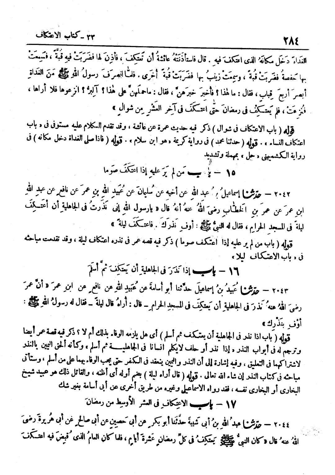 ذَكَرَ فِيهِ قِصَّةَ عُمَرَ فِي نَذْرِهِ اعْتِكَافَ لَيْلَةٍ وَقَدْ تَقَدَّمَتْ مَبَاحِثُهُ فِي بَاب الِاعْتِكَاف لَيْلًا قَوْلُهُ بَابٌ إِذَا نَذَرَ فِي الْجَاهِلِيَّةِ أَنْ يَعْتَكِفَ ثُمَّ أَسْلَمَ أَيْ هَلْ يَلْزَمُهُ الْوَفَاءُ بِذَلِكَ أَمْ لَا ذَكَرَ فِيهِ قِصَّةَ عُمَرَ أَيْضًا وَتَرْجَمَ لَهُ فِي أَبْوَابِ النَّذْرِ إِذَا نَذَرَ أَوْ حَلَفَ لَا يُكَلِّمُ إِنْسَانًا فِي الْجَاهِلِيَّةِ ثُمَّ أَسْلَمَ وَكَأَنَّهُ أَلْحَقَ الْيَمِينَ بِالنَّذْرِ لِاشْتِرَاكِهِمَا فِي التَّعْلِيقِ وَفِيهِ إِشَارَةٌ إِلَى أَنَّ النَّذْرَ وَالْيَمِينَ يَنْعَقِدُ فِي الْكُفْرِ حَتَّى يَجِبَ الْوَفَاءُ بِهِمَا عَلَى مَنْ أَسْلَمَ وَسَتَأْتِي مَبَاحِثُهُ فِي كِتَابِ النَّذْرِ إِنْ شَاءَ اللَّهُ تَعَالَى