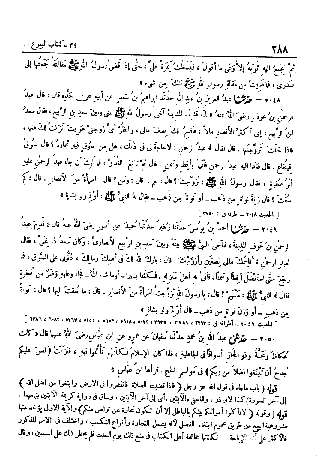 كَذَا لِأَبِي ذَرٍّ وَلِلنَّسَفِيِّ الْآيَتَيْنِ أَيْ إِلَى آخِرِ الْآيَتَيْنِ وَسَاقَ فِي رِوَايَةِ كَرِيمَةَ الْآيَتَيْنِ بِتَمَامِهِمَا قَوْلُهُ وَقَوْلُهُ لَا تَأْكُلُوا أَمْوَالَكُمْ بَيْنَكُمْ بِالْبَاطِلِ إِلَّا أَنْ تَكُونَ تِجَارَة عَن ترَاض مِنْكُم وَالْآيَةُ الْأُولَى يُؤْخَذُ مِنْهَا مَشْرُوعِيَّةُ الْبَيْعِ مِنْ طَرِيقِ عُمُومِ ابْتِغَاءِ الْفَضْلِ لِأَنَّهُ يَشْمَلُ التِّجَارَةَ وَأَنْوَاعَ التَّكَسُّبِ وَاخْتُلِفَ فِي الْأَمْرِ الْمَذْكُورِ فَالْأَكْثَرُ عَلَى أَنَّهُ لِلْإِبَاحَةِ وَنُكْتَتُهَا مُخَالَفَةُ أَهْلِ الْكِتَابِ فِي مَنْعِ ذَلِكَ يَوْمَ السَّبْتِ فَلَمْ يُحْظَرْ ذَلِكَ عَلَى الْمُسْلِمِينَ وَقَالَ