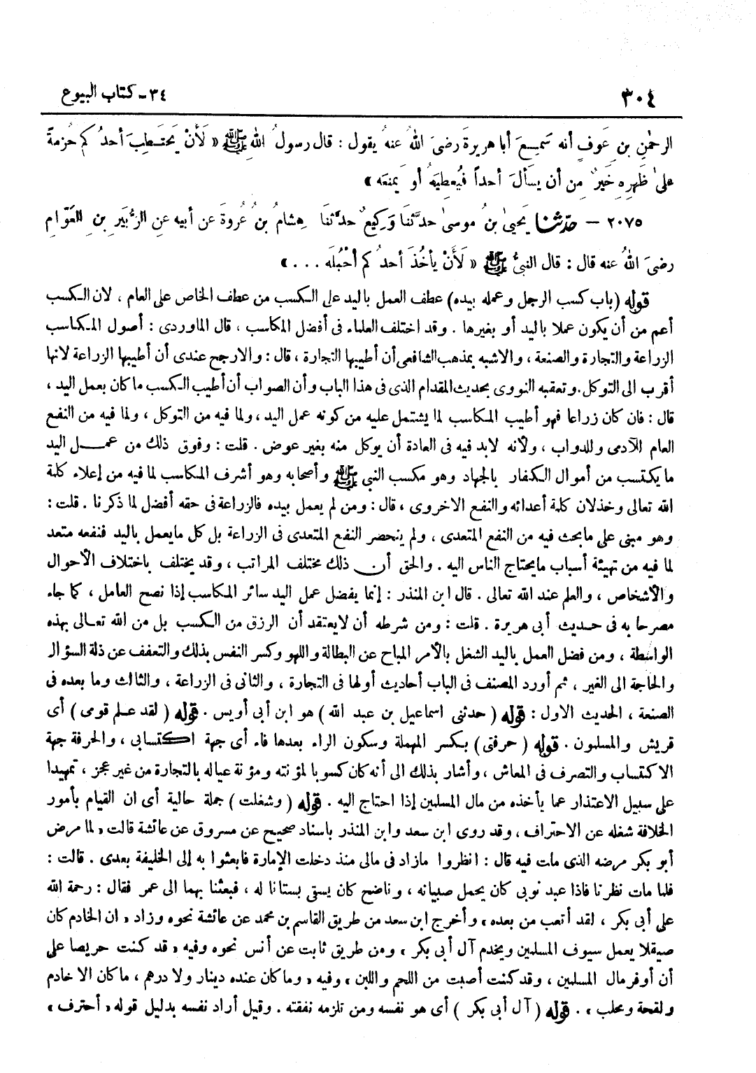 عَطْفُ الْعَمَلَ بِالْيَدِ عَلَى الْكَسْبِ مِنْ عَطْفِ الْخَاصِّ عَلَى الْعَامِّ لِأَنَّ الْكَسْبَ أَعَمُّ مِنْ أَنْ يَكُونَ عَمَلًا بِالْيَدِ أَوْ بِغَيْرِهَا وَقَدِ اخْتَلَفَ الْعُلَمَاءُ فِي أَفْضَلِ الْمَكَاسِبِ قَالَ الْمَاوَرْدِيُّ أُصُولُ الْمَكَاسِبِ الزِّرَاعَةُ وَالتِّجَارَةُ وَالصَّنْعَةُ وَالْأَشْبَهُ بِمَذْهَبِ الشَّافِعِيِّ أَنَّ أَطْيَبَهَا التِّجَارَةُ قَالَ وَالْأَرْجَحُ عِنْدِي أَنَّ أَطْيَبَهَا الزِّرَاعَةُ لِأَنَّهَا أَقْرَبُ إِلَى التَّوَكُّلِ وَتَعَقَّبَهُ النَّوَوِيُّ بِحَدِيثِ الْمِقْدَامِ الَّذِي فِي هَذَا الْبَابِ وَأَنَّ الصَّوَابَ أَنَّ أَطْيَبَ الْكَسْبِ مَا كَانَ بِعَمَلِ الْيَدِ قَالَ فَإِنْ كَانَ زِرَاعًا فَهُوَ أَطْيَبُ الْمَكَاسِبِ لِمَا يَشْتَمِلُ عَلَيْهِ مِنْ كَوْنِهِ عَمَلَ الْيَدِ وَلِمَا فِيهِ مِنَ التَّوَكُّلِ وَلِمَا فِيهِ مِنَ النَّفْعِ الْعَامِّ لِلْآدَمِيِّ وَلِلدَّوَابِّ وَلِأَنَّهُ لَا بُدَّ فِيهِ فِي الْعَادَةِ أَنْ يُوكَلَ مِنْهُ بِغَيْرِ عِوَضٍ قُلْتُ وَفَوْقَ ذَلِكَ مِنْ عَمَلِ الْيَدِ مَا يُكْتَسَبُ مِنْ أَمْوَالِ الْكُفَّارِ بِالْجِهَادِ وَهُوَ مَكْسَبُ النَّبِيِّ صَلَّى اللَّهُ عَلَيْهِ وَسَلَّمَ وَأَصْحَابِهِ وَهُوَ أَشْرَفُ الْمَكَاسِبِ لِمَا فِيهِ مِنْ إِعْلَاءِ كَلِمَةِ اللَّهِ تَعَالَى وَخِذْلَانِ كَلِمَةِ أَعْدَائِهِ وَالنَّفْعِ الْأُخْرَوِيِّ قَالَ وَمَنْ لَمْ يَعْمَلْ بِيَدِهِ فَالزِّرَاعَةُ فِي حَقِّهِ أَفْضَلُ لِمَا ذَكَرْنَا قُلْتُ وَهُوَ مَبْنِيٌّ عَلَى مَا بُحِثَ فِيهِ مِنَ النَّفْعِ الْمُتَعَدِّي وَلَمْ يَنْحَصِرِ النَّفْعُ الْمُتَعَدِّي فِي الزِّرَاعَةِ بَلْ كُلُّ مَا يُعْمَلُ بِالْيَدِ فَنَفْعُهُ مُتَعَدٍّ لِمَا فِيهِ مِنْ تَهْيِئَةِ أَسْبَابِ مَا يَحْتَاجُ النَّاسُ إِلَيْهِ وَالْحَقُّ أَنَّ ذَلِكَ مُخْتَلِفُ الْمَرَاتِبِ وَقَدْ يَخْتَلِفُ بِاخْتِلَافِ الْأَحْوَالِ وَالْأَشْخَاصِ وَالْعلم عِنْد الله تَعَالَى قَالَ بن الْمُنْذِرِ إِنَّمَا يَفْضُلُ عَمَلُ الْيَدِ سَائِرَ الْمَكَاسِبِ إِذَا نَصَحَ الْعَامِلُ كَمَا جَاءَ مُصَرَّحًا بِهِ فِي حَدِيثِ أَبِي هُرَيْرَةَ قُلْتُ وَمِنْ شَرْطِهِ أَنْ لَا يَعْتَقِدَ أَنَّ الرِّزْقَ مِنَ الْكَسْبِ بَلْ مِنَ اللَّهِ تَعَالَى بِهَذِهِ الْوَاسِطَةِ وَمِنْ فَضْلِ الْعَمَلِ بِالْيَدِ الشُّغْلُ بِالْأَمْرِ الْمُبَاحِ عَنِ الْبَطَالَةِ وَاللَّهْوِ وَكَسْرُ النَّفْسِ بِذَلِكَ وَالتَّعَفُّفُ عَنْ ذِلَّةِ السُّؤَالِ وَالْحَاجَةِ إِلَى الْغَيْر ثُمَّ أَوْرَدَ الْمُصَنِّفُ فِي الْبَابِ أَحَادِيثَ أَوَّلَهَا فِي التِّجَارَةِ وَالثَّانِي فِي الزِّرَاعَةِ وَالثَّالِثُ وَمَا بَعْدَهُ فِي الصَّنْعَةِ الْحَدِيثُ الْأَوَّلُ
