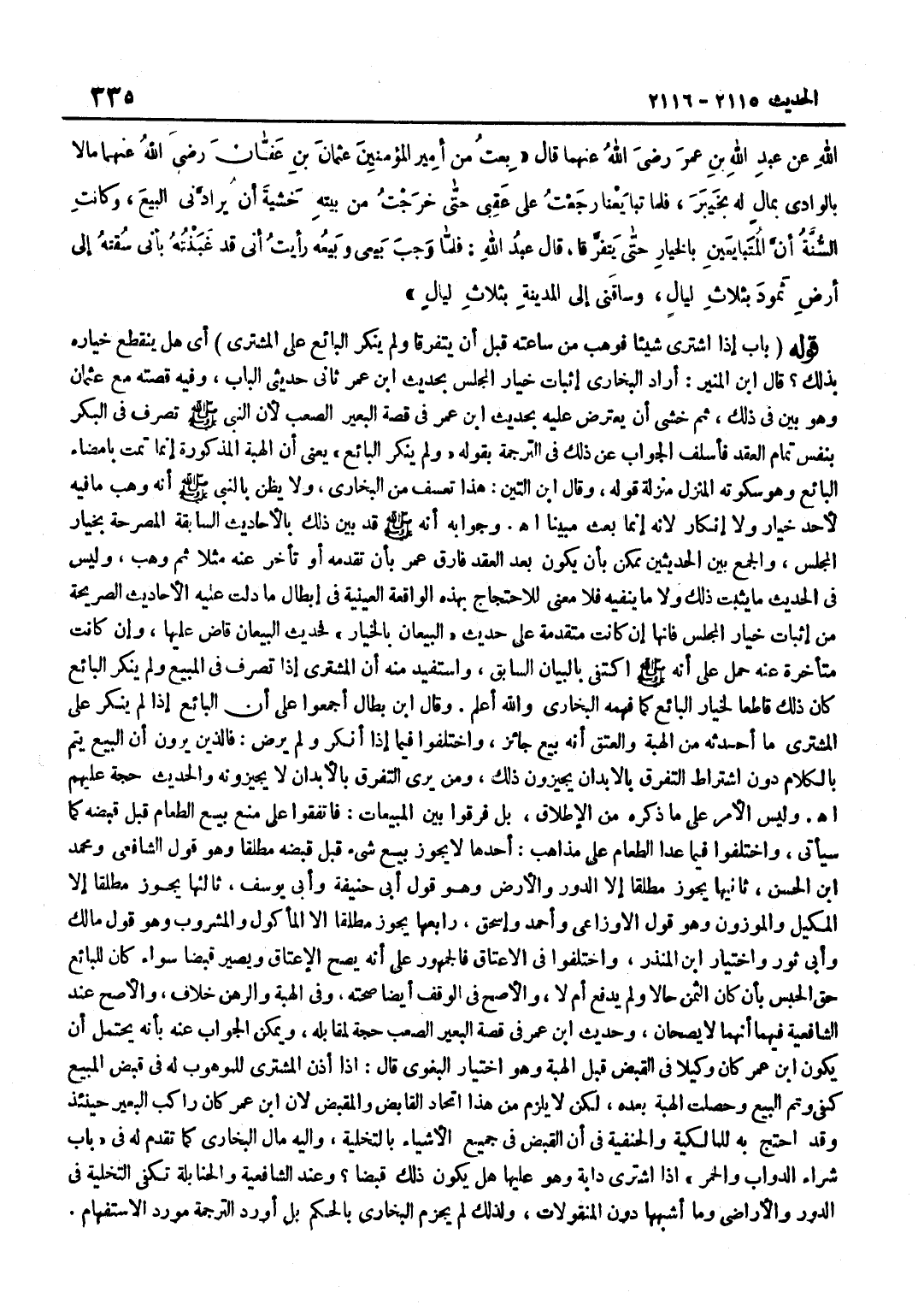 أَيْ هَلْ يَنْقَطِعُ خِيَارُهُ بِذَلِكَ قَالَ بن الْمُنِيرِ أَرَادَ الْبُخَارِيُّ إِثْبَاتَ خِيَارِ الْمَجْلِسِ بِحَدِيثِ بن عُمَرَ ثَانِي حَدِيثَيِ الْبَابِ وَفِيهِ قِصَّتُهُ مَعَ عُثْمَانَ وَهُوَ بَيِّنٌ فِي ذَلِكَ ثُمَّ خَشِيَ أَن يعْتَرض عَلَيْهِ بِحَدِيث بن عُمَرَ فِي قِصَّةِ الْبَعِيرِ الصَّعْبِ لِأَنَّ النَّبِيَّ صَلَّى اللَّهُ عَلَيْهِ وَسَلَّمَ تَصَرَّفَ فِي الْبَكْرِ بِنَفس تَمام العقد فأسلفت الْجَوَابَ عَنْ ذَلِكَ فِي التَّرْجَمَةِ بِقَوْلِهِ وَلَمْ يُنْكِرِ الْبَائِعُ يَعْنِي أَنَّ الْهِبَةَ الْمَذْكُورَةَ إِنَّمَا تَمَّتْ بِإِمْضَاءِ الْبَائِعِ وَهُوَ سُكُوتُهُ الْمُنَزَّلُ مَنْزِلَةَ قَوْله وَقَالَ بن التِّينِ هَذَا تَعَسُّفٌ مِنَ الْبُخَارِيِّ وَلَا يُظَنُّ بِالنَّبِيِّ صَلَّى اللَّهُ عَلَيْهِ وَسَلَّمَ أَنَّهُ وَهَبَ مَا فِيهِ لِأَحَدٍ خِيَارٌ وَلَا إِنْكَارَ لِأَنَّهُ إِنَّمَا بُعِثَ مُبَيِّنًا اه وَجَوَابُهُ أَنَّهُ صَلَّى الله عَلَيْهِ وَسلم قدبين ذَلِكَ بِالْأَحَادِيثِ السَّابِقَةِ الْمُصَرِّحَةِ بِخِيَارِ الْمَجْلِسِ وَالْجَمْعُ بَيْنَ الْحَدِيثَيْنِ مُمْكِنٌ بِأَنْ يَكُونَ بَعْدَ الْعَقْدِ فَارَقَ عُمَرَ بِأَنْ تَقَدَّمَهُ أَوْ تَأَخَّرَ عَنْهُ مَثَلًا ثُمَّ وَهَبَ وَلَيْسَ فِي الْحَدِيثِ مَا يُثْبِتُ ذَلِكَ وَلَا مَا يَنْفِيهِ فَلَا مَعْنَى لِلِاحْتِجَاجِ بِهَذِهِ الْوَاقِعَةِ الْعَيْنِيَّةِ فِي إِبْطَالِ مَا دَلَّتْ عَلَيْهِ الْأَحَادِيثُ الصَّرِيحَةُ مِنْ إِثْبَاتِ خِيَارِ الْمَجْلِسِ فَإِنَّهَا إِنْ كَانَتْ مُتَقَدِّمَةً عَلَى حَدِيثِ الْبَيِّعَانِ بِالْخِيَارِ فَحَدِيثُ الْبَيِّعَانِ قَاضٍ عَلَيْهَا وَإِنْ كَانَتْ مُتَأَخِّرَةً عَنْهُ حُمِلَ عَلَى أَنَّهُ صَلَّى اللَّهُ عَلَيْهِ وَسَلَّمَ اكْتَفَى بِالْبَيَانِ السَّابِقِ وَاسْتُفِيدَ مِنْهُ أَنَّ الْمُشْتَرِيَ إِذَا تَصَرَّفَ فِي الْمَبِيعِ وَلَمْ يُنْكِرِ الْبَائِعُ كَانَ ذَلِكَ قَاطِعًا لِخِيَارِ الْبَائِعِ كَمَا فَهِمَهُ الْبُخَارِيُّ وَاللَّهُ أَعْلَمُ وَقَالَ بن بَطَّالٍ أَجْمَعُوا عَلَى أَنَّ الْبَائِعَ إِذَا لَمْ يُنْكِرْ عَلَى الْمُشْتَرِي مَا أَحْدَثَهُ مِنَ الْهِبَةِ وَالْعِتْقِ أَنَّهُ بَيْعٌ جَائِزٌ وَاخْتَلَفُوا فِيمَا إِذَا أَنْكَرَ وَلَمْ يَرْضَ فَالَّذِينَ يَرَوْنَ أَنَّ الْبَيْعَ يَتِمُّ بِالْكَلَامِ دُونَ اشْتِرَاطِ التَّفَرُّقِ بِالْأَبْدَانِ يُجِيزُونَ ذَلِكَ وَمَنْ يَرَى التَّفَرُّقَ بِالْأَبْدَانِ لَا يُجِيزُونَهُ وَالْحَدِيثُ حُجَّةٌ عَلَيْهِمْ اه وَلَيْسَ الْأَمْرُ عَلَى مَا ذَكَرَهُ مِنَ الْإِطْلَاقِ بَلْ فَرَّقُوا بَيْنَ الْمَبِيعَاتِ فَاتَّفَقُوا عَلَى مَنْعِ بَيْعِ الطَّعَامِ قَبْلَ قَبْضِهِ كَمَا سَيَأْتِي وَاخْتَلَفُوا فِيمَا عَدَا الطَّعَامَ عَلَى مَذَاهِبَ أَحَدُهَا لَا يَجُوزُ بَيْعُ شَيْءٍ قَبْلَ قَبْضِهِ مُطْلَقًا وَهُوَ قَوْلُ الشَّافِعِيِّ وَمُحَمَّدِ بْنِ الْحَسَنِ ثَانِيهَا يَجُوزُ مُطْلَقًا إِلَّا الدُّورَ وَالْأَرْضَ وَهُوَ قَوْلُ أَبِي حَنِيفَةَ وَأَبِي يُوسُفَ ثَالِثُهَا يَجُوزُ مُطْلَقًا إِلَّا الْمَكِيلَ وَالْمَوْزُونَ وَهُوَ قَوْلُ الْأَوْزَاعِيِّ وَأَحْمَدَ وَإِسْحَاقَ رَابِعُهَا يَجُوزُ مُطْلَقًا إِلَّا الْمَأْكُولَ وَالْمَشْرُوبَ وَهُوَ قَوْلُ مَالِكٍ وَأَبِي ثَوْر وَاخْتِيَار بن الْمُنْذِرِ وَاخْتَلَفُوا فِي الْإِعْتَاقِ فَالْجُمْهُورُ عَلَى أَنَّهُ يَصِحُّ الْإِعْتَاقُ وَيَصِيرُ قَبْضًا سَوَاءٌ كَانَ لِلْبَائِعِ حَقُّ الْحَبْسِ بِأَنْ كَانَ الثَّمَنُ حَالًّا وَلَمْ يَدْفَعْ أَمْ لَا وَالْأَصَحُّ فِي الْوَقْفِ أَيْضًا صِحَّتُهُ وَفِي الْهِبَةِ وَالرَّهْنِ خِلَافٌ وَالْأَصَحُّ عِنْدَ الشَّافِعِيَّة ف