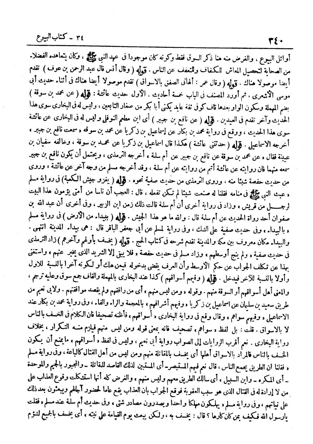 [2118] قَوْلُهُ عَنْ مُحَمَّدِ بْنِ سُوقَةَ بِضَمِّ الْمُهْمَلَةِ وَسُكُونِ الْوَاوِ بَعْدَهَا قَافٌ كُوفِيٌّ ثِقَةٌ عَابِدٌ يُكَنَّى أَبَا بَكْرٍ مِنْ صِغَارِ التَّابِعِينَ وَلَيْسَ لَهُ فِي الْبُخَارِيِّ سِوَى هَذَا الْحَدِيثِ وَآخَرَ تَقَدَّمَ فِي الْعِيدَيْنِ قَوْلُهُ عَنْ نَافِعِ بْنِ جُبَير أَي بن مُطْعِمٍ النَّوْفَلِيُّ وَلَيْسَ لَهُ فِي الْبُخَارِيِّ عَنْ عَائِشَةَ سِوَى هَذَا الْحَدِيثِ وَوَقَعَ فِي رِوَايَةِ مُحَمَّدِ بْنِ بَكَّارٍ عَنْ إِسْمَاعِيلَ بْنِ زَكَرِيَّا عَنْ مُحَمَّدِ بْنِ سُوقَةَ سَمِعْتُ نَافِعَ بْنَ جُبَيْرٍ أَخْرَجَهُ الْإِسْمَاعِيلِيُّ قَوْلُهُ حَدَّثَتْنِي عَائِشَةُ هَكَذَا قَالَ إِسْمَاعِيلُ بْنُ زَكَرِيَّا عَنْ مُحَمَّدِ بْنِ سُوقَةَ وَخَالَفَهُ سُفْيَانُ بْنُ عُيَيْنَةَ فَقَالَ عَنْ مُحَمَّدِ بْنِ سُوقَةَ عَنْ نَافِعِ بْنِ جُبَيْرٍ عَنْ أُمِّ سَلَمَةَ أَخْرَجَهُ التِّرْمِذِيُّ وَيُحْتَمَلُ أَنْ يَكُونَ نَافِعُ بْنُ جُبَيْرٍ سَمِعَهُ مِنْهُمَا فَإِنَّ رِوَايَتَهُ عَنْ عَائِشَةَ أَتَمُّ مِنْ رِوَايَتِهِ عَنْ أُمِّ سَلَمَةَ وَقَدْ أَخْرَجَهُ مُسْلِمٌ مِنْ وَجْهٍ آخَرَ عَنْ عَائِشَةَ وَرَوَى مِنْ حَدِيثِ حَفْصَةَ شَيْئًا مِنْهُ وَرَوَى التِّرْمِذِيُّ مِنْ حَدِيثِ صَفِيَّةَ نَحْوَهُ قَوْلُهُ يَغْزُو جَيْشٌ الْكَعْبَةَ فِي رِوَايَةِ مُسْلِمٍ عَبَثَ النَّبِيُّ صَلَّى اللَّهُ عَلَيْهِ وَسَلَّمَ فِي مَنَامِهِ فَقُلْنَا لَهُ صَنَعْتَ شَيْئًا لَمْ تَكُنْ تَفْعَلُهُ قَالَ الْعَجَبُ أَنَّ نَاسًا مِنْ أُمَّتِي يَؤُمُّونَ هَذَا الْبَيْتَ لِرَجُلٍ مِنْ قُرَيْشٍ وَزَادَ فِي رِوَايَةٍ أُخْرَى أَنَّ أُمَّ سَلَمَةَ قَالَت ذَلِك زمن بن الزُّبَيْرِ وَفِي أُخْرَى أَنَّ عَبْدَ اللَّهِ بْنَ صَفْوَانَ أَحَدَ رُوَاةِ الْحَدِيثِ عَنْ أُمِّ سَلَمَةَ قَالَ وَاللَّهِ مَا هُوَ هَذَا الْجَيْشُ قَوْلُهُ بِبَيْدَاءَ مِنَ الْأَرْضِ فِي رِوَايَةِ مُسْلِمٍ بِالْبَيْدَاءِ وَفِي حَدِيثِ صَفِيَّةَ عَلَى الشَّكِّ وَفِي رِوَايَةٍ لِمُسْلِمٍ عَنْ أَبِي جَعْفَرٍ الْبَاقِرِ قَالَ هِيَ بَيْدَاءُ الْمَدِينَةِ انْتَهَى وَالْبَيْدَاءُ مَكَانٌ مَعْرُوفٌ بَيْنَ مَكَّةَ وَالْمَدِينَةِ تَقَدَّمَ شَرْحُهُ فِي كِتَابِ الْحَجِّ قَوْلُهُ يُخْسَفُ بِأَوَّلِهِمْ وَآخِرِهِمْ زَادَ التِّرْمِذِيُّ فِي حَدِيثِ صَفِيَّةَ وَلَمْ يَنْجُ أَوْسَطُهُمْ وَزَادَ مُسْلِمٌ فِي حَدِيثِ حَفْصَةَ فَلَا يَبْقَى إِلَّا الشَّرِيدُ الَّذِي يُخْبِرُ عَنْهُمْ وَاسْتُغْنِيَ بِهَذَا عَنْ تَكَلُّفِ الْجَوَابِ عَنْ حُكْمِ الْأَوْسَطِ وَأَنَّ الْعُرْفَ يَقْضِي بِدُخُولِهِ فِيمَنْ هَلَكَ أَوْ لِكَوْنِهِ آخِرًا بِالنِّسْبَةِ لِلْأَوَّلِ وَأَوَّلًا بِالنِّسْبَةِ لِلْآخِرِ فَيَدْخُلُ قَوْلُهُ وَفِيهِمْ أَسْوَاقُهُمْ كَذَا عِنْدَ الْبُخَارِيِّ بِالْمُهْمَلَةِ وَالْقَافِ جَمْعُ سُوقٍ وَعَلَيْهِ تَرْجَمَ وَالْمَعْنَى أَهْلُ أَسْوَاقِهِمْ أَوِ السُّوقَةُ مِنْهُمْ وَقَوْلُهُ وَمَنْ لَيْسَ مِنْهُمْ أَيْ مَنْ رَافَقَهُمْ وَلَمْ يَقْصِدْ مُوَافَقَتَهُمْ وَلِأَبِي نُعَيْمٍ مِنْ طَرِيقِ سَعِيدِ بْنِ سُلَيْمَانَ عَنْ إِسْمَاعِيلَ بْنِ زَكَرِيَّا وَفِيهِمْ أَشْرَافُهُمْ بِالْمُعْجَمَةِ وَالرَّاءِ وَالْفَاءِ وَفِي رِوَايَةِ مُحَمَّدِ بْنِ بَكَّارٍ عِنْدَ الْإِسْمَاعِيلِيِّ وَفِيهِمْ سِوَاهُمْ وَقَالَ وَقَعَ فِي رِوَايَةِ الْبُخَارِيِّ أَسْوَاقُهُمْ فَأَظُنُّهُ تَصْحِيفًا فَإِنَّ الْكَلَامَ فِي الْخَسْفِ بِالنَّاسِ لَا بِالْأَسْوَاقِ قُلْتُ بَلْ لَفْظُ سِوَاهُمْ تَصْحِيفٌ فَإِنَّهُ بِمَعْنَى قَوْلِهِ وَمَنْ لَيْسَ مِنْهُمْ فَيَلْزَمُ مِنْهُ التَّكْرَارُ بِخِلَافِ رِوَايَةِ الْبُخَارِيِّ نَعَمْ أَقْرَبُ ال