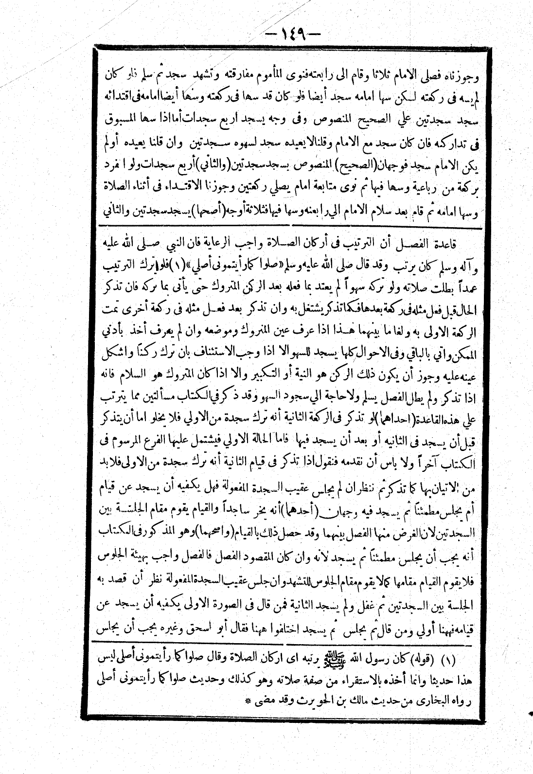 قاعدة الفصل أن الترتيب في أركان الصلاة واجب الرعاية فان النبي صلى الله عليه وسلم كان يرتب وقد قال صلى الله عليه وسلم " صلوا كما رأيتموني أصلي " فلو ترك الترتيب عمدا بطلت صلاته ولو تركه سهوا لم يعتد بما فعله بعد الركن المتروك حتى يأتي بما تركه فان تذكر