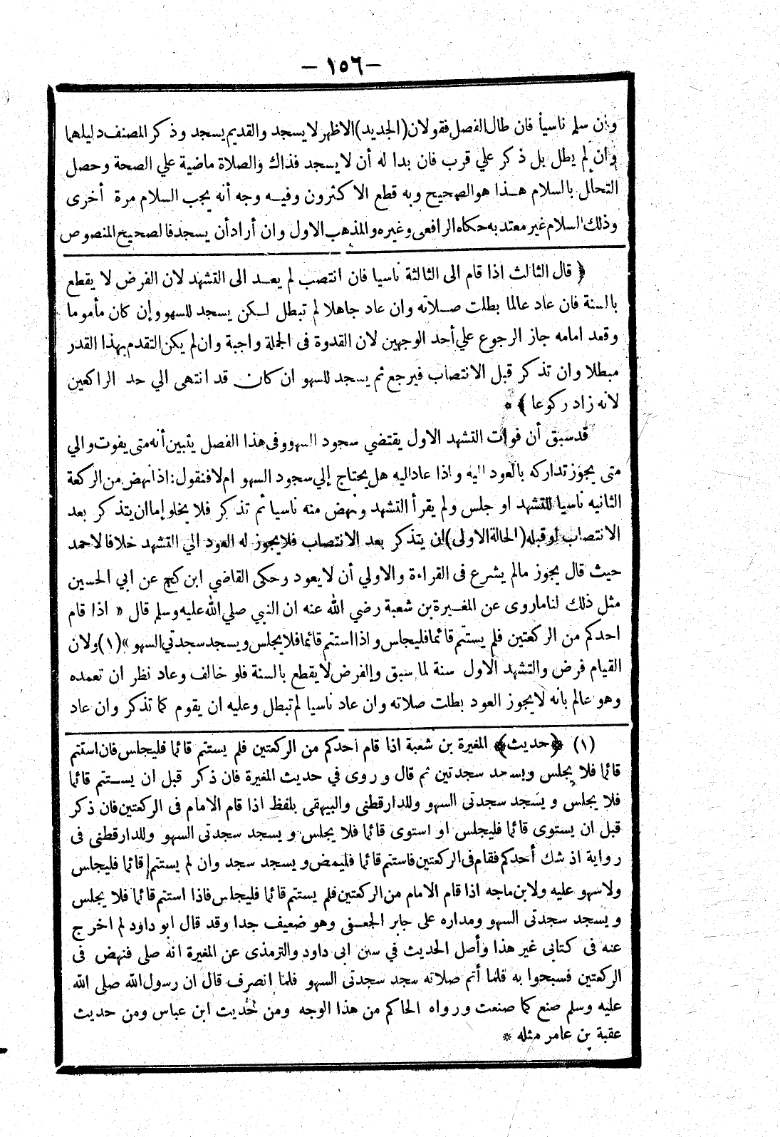 (قال الثالث إذا قام إلى الثالثة ناسيا فان انتصب لم يعد إلى التشهد لان الفرض لا يقطع بالسنة فان عاد عالما بطلت صلاته وان عاد جاهلا لم تبطل لكن يسجد للسهو وإن كان مأموما وقعد امامه جاز الرجوع علي أحد الوجهين لان القدوة في الجملة واجبة وان لم يكن التقدم بهذا القدر مبطلا وان تذكر قبل الانتصاب فيرجع ثم يسجد للسهو ان كان قد انتهى الي حد الراكعين لانه زاد ركوعا) * قد سبق أن فوات التشهد الاول يقتضي سجود السهو وفى هذا الفصل يتبين أنه متى يفوت والي متى يجوز تداركه بالعود إليه وإذا عاد إليه هل يحتاج إلي سجود السهو ام لا فنقول: إذا نهض من الركعة الثانية ناسيا للتشهد أو جلس ولم يقرأ التشهد ونهض منه ناسيا ثم تذكر فلا يخلو إما ان يتذكر بعد الانتصاب أو قبله (الحالة الاولى) ان يتذكر بعد الانتصاب فلا يجوز له العود الي التشهد خلافا لاحمد حيث قال يجوز ما لم يشرع في القراءة والاولي أن لا يعود وحكى القاضي ابن كج عن ابي الحسين مثل ذلك لنا ما روى عن المغيرة بن شعبة رضي الله عنه ان النبي صلى الله عليه وسلم قال " إذا قام احدكم من الركعتين فلم يستتم قائما فليجلس وإذا استتم قائما فلا يجلس ويسجد سجدتي السهو " ولان القيام فرض والتشهد الاول سنة لما سبق والفرض لا يقطع بالسنة فلو خالف وعاد نظر ان تعمده وهو عالم بانه لا يجوز العود بطلت صلاته وان عاد ناسيا لم تبطل وعليه ان يقوم كما تذكر وان عاد