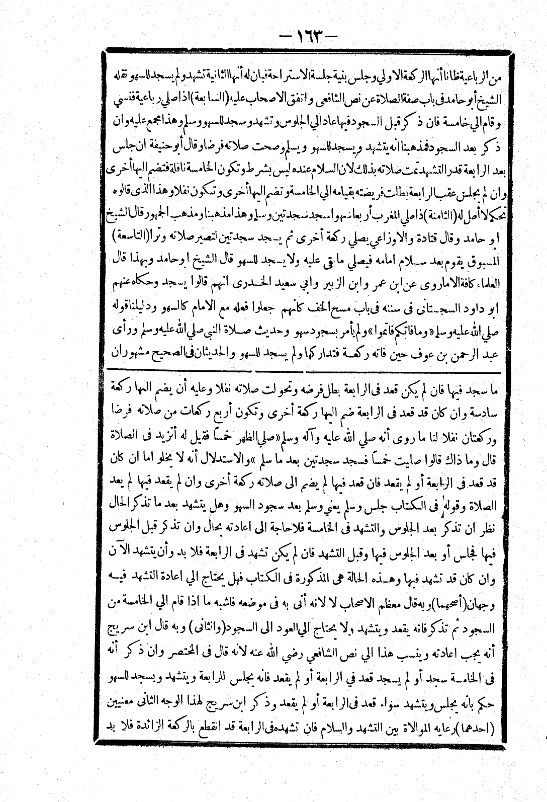 ما سجد فيها فان لم يكن قعد في الرابعة بطل فرضه وتحولت صلاته نفلا وعليه أن يضم إليها ركعة سادسة وان كان قد قعد في الرابعة ضم إليها ركعة أخرى وتكون أربع ركعات من صلاته فرضا وركعتان نفلا لنا ما روى أنه صلي الله عليه وسلم " صلي الظهر خمسا فقيل له أتزيد في الصلاة قال وما ذاك قالوا صليت خمسا فسجد سجدتين بعدما سلم " والاستدلال أنه لا يخلو اما ان كان قد قعد في الرابعة أو لم يقعد فان قعد فيها لم يضم إلى صلاته ركعة أخرى وان لم يقعد فيها لم يعد الصلاة وقوله في الكتاب جلس وسلم يعني وسلم بعد سجود السهو وهل يتشهد بعدما تذكر الحال نظر ان تذكر بعد الجلوس والتشهد في الخامسة فلا حاجة إلى اعادته بحال وان تذكر قبل الجلوس فيها فجلس أو بعد الجلوس فيها وقبل التشهد فان لم يكن تشهد في الرابعة فلا بد وأن يتشهد الآن وان كان قد تشهد فيها وهذه الحالة هي المذكورة في الكتاب فهل يحتاج الي اعادة التشهد فيه وجهان (أصحهما) وبه قال معظم الاصحاب لا لانه أتى به في موضعه فاشبه ما إذا قام الي الخامسة من السجود ثم تذكر فانه يقعد ويتشهد ولا يحتاج الي العود إلى السجود (والثانى) وبه قال ابن سريج أنه يجب اعادته وينسب هذا الي نص الشافعي رضي الله عنه لانه قال في المختصر وان ذكر أنه في الخامسة سجد أو لم يسجد قعد في الرابعة أو لم يقعد فانه يجلس للرابعة ويتشهد ويسجد للسهو حكم بانه يجلس ويتشهد سواء قعد في الرابعة أو لم يقعد وذكر ابن سريج لهذا الوجه الثاني معنيين (احدهما) رعاية الموالاة بين التشهد والسلام فان تشهده في الرابعة قد انقطع بالركعة الزائدة فلا بد