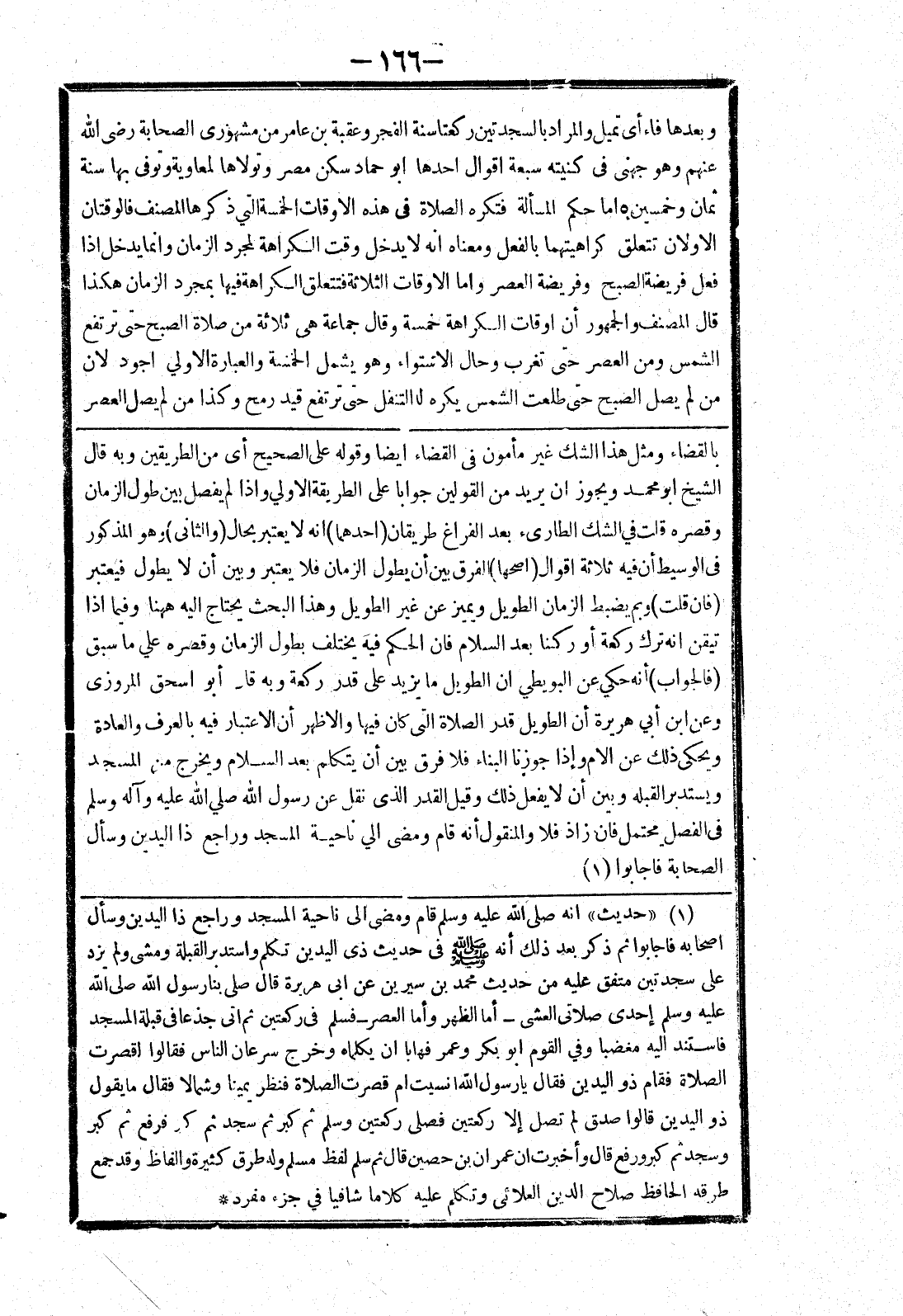 (فالجواب) أنه حكي عن البويطي ان الطويل ما يزيد على قدر ركعة وبه قال أبو إسحق المروزى وعن ابن أبي هريرة أن الطويل قدر الصلاة التى كان فيها والاظهر أن الاعتبار فيه بالعرف والعادة ويحكى ذلك عن الام وإذا جوزنا البناء فلا فرق بين أن يتكلم بعد السلام ويخرج من المسجد ويستدبر القبله وبين أن لا يفعل ذلك وقيل القدر الذى نقل عن رسول الله صلي الله عليه وسلم في الفصل محتمل فان زاد فلا والمنقول أنه قام ومضى الي ناحية المسجد وراجع ذا اليدين وسأل الصحابة فأجابوا