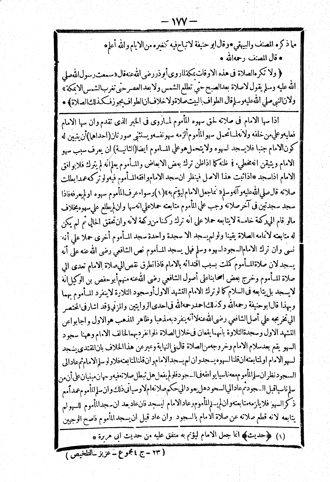إذا سهاالامام في صلاته لحق سهوه المأموم لما روى في الخبر الذي تقدم وان سها الامام فعليه وعلي من خلفه ولانه لما تحمل سهو المأموم ألزمه سهو نفسه ويستثنى صورتان (احداهما) أن يتبين له كون الامام جنبا فلا يسجد لسهوه ولا يتحمل هو علي المأموم ايضا (الثانية) ان يعرف سبب سهو الامام ويتيقن انه مخطئ في ظنه كما إذا ظن ترك بعض الابعاض والمأموم يعلم انه لم يترك فلا يوافق الامام إذا سجد * إذا ثبت هذا الاصل فينظر ان سجد الامام وافقه المأموم فيه ولو تركه عمدا بطلت صلاته قال صلي الله عليه وسلم " انما جعل الامام ليؤتم به " وسواء عرف المأموم سهوه أو لم يعرفه فإذا سجد سجدتين في آخر صلاته وجب علي المأموم متابعته حملا علي انه سها وان لم يطلع علي سهوه بخلاف ما لو قام الي ركعة خامسه لا يتابعه حملا على انه ترك ركنا من ركعة لانه وان تحقق الحال ثم لم يكن له متابعته لاتمامه الصلاة يقينا ولو لم يسجد الا سجدة واحدة سجد المأموم أخرى حملا علي أنه نسى وان ترك الامام السجود لسهوه وسلم فهل يسجد المأموم نص الشافعي رضى الله عنه على أنه يسجد لان صلاة المأموم كملت بسبب اقتدائه بالامام فإذا تطرق نقص الي صلاة الامام تعدى الي صلاة المأموم وخرج بعض اصحابنا على أصول الشافعي رضى الله عنه منهم أبو حفص بن الوكيل انه