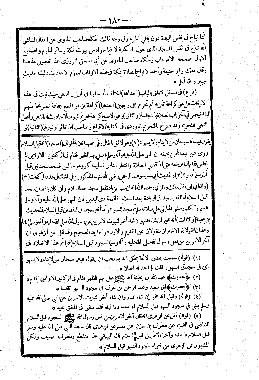 يقول فيهما " سبحان من لا ينام ولا يسهو " وهو لائق بالحال وفى محلهما ثلاثة أقوال (اصحها) أنه قبل السلام روى عن عبد الله بن بحينه ان النبي صلي الله عليه وسلم " صلي بهم الظهر فقام في الركعتين الاولتين لم يجلس فقام الناس معه حتى إذا قضي الصلاة وانتظر الناس تسليمه كبر وهو جالس فسجد سجدتين قبل أن يسلم ثم سلم " ولحديث أبي سعيد وعبد الرحمن رضي الله عنهما المذكورين في الشك في عدد الركعات (والثاني) وبه قال مالك والمزني رحمهما الله انه ان سها بزيادة فعل سجد بعد السلام وان كان بنقصان سجد قبل السلام أما انه يسجد في الزيادة بعد السلام فلقصة ذى اليدين فان النبي صلي الله عليه وسلم " سلم وتكلم ومشي فلما بنى علي صلاته سلم ثم سجد للسهو " وأما أنه يسجد في النقصان قبل السلام فلحديث ابن بحينة (والثالث) أنه مخير ان شاء قدم وان شاء أخر لثبوت الامرين عن رسول الله صلي الله عليه وسلم وهذان القولان الاخيران منقولان عن القديم والاول هو الجديد الصحيح وقد نقل عن الزهري ان آخر الامرين من فعل رسول الله صلى الله عليه وسلم السجود قبل السلام ثم هذا الاختلاف في