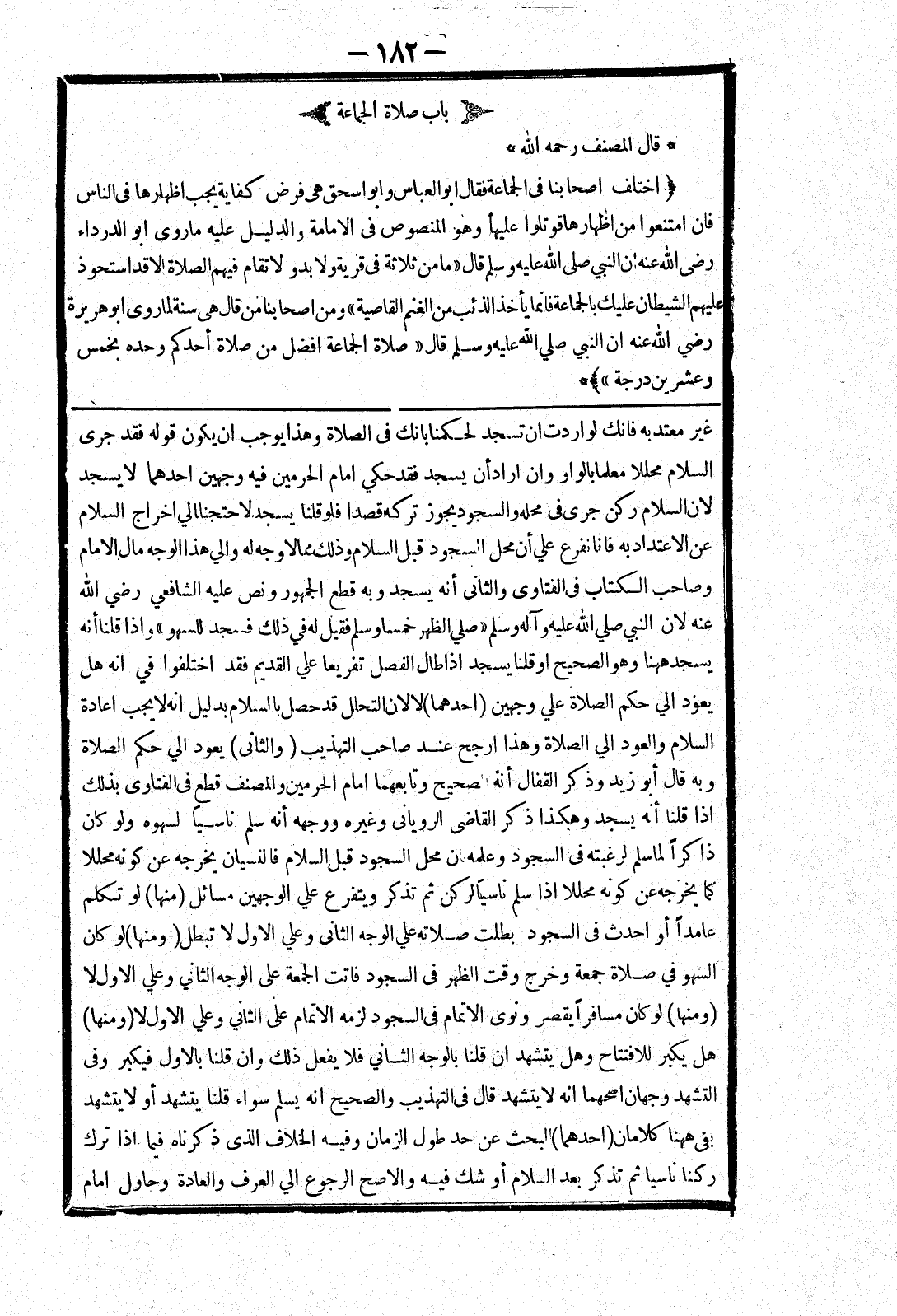عنه لان النبي صلي الله عليه وسلم " صلي الظهر خمسا وسلم فقيل له في ذلك فسجد للسهو " وإذا قلنا أنه يسجد ههنا وهو الصحيح أو قلنا إذا طال الفصل تفريعا علي القديم فقد اختلفوا في انه هل يعود الي حكم الصلاة علي وجهين (احدهما) لا لان التحلل قد حصل بالسلام بدليل انه لا يجب اعادة السلام والعود الي الصلاة وهذا ارجح عند صاحب التهذيب (والثانى) يعود الي حكم الصلاة وبه قال أبو زيد وذكر القفال أنه الصحيح وتابعهما امام الحرمين والمصنف قطع في الفتاوى بذلك إذا قلنا أنه يسجد وهكذا ذكر القاضى الرويانى وغيره ووجهه أنه سلم ناسيا لسهوه ولو كان ذاكرا لما سلم لرغبته في السجود وعلمه ان محل السجود قبل السلام فالنسيان يخرجه عن كونه محللا كما يخرجه عن كونه محللا إذا سلم ناسيا لركن ثم تذكر ويتفرع علي الوجهين مسائل (منها) لو تكلم عامدا أو احدث في السجود بطلت صلاته علي الوجه الثاني وعلي الاول لا تبطل (ومنها) لو كان السهو في صلاة جمعة وخرج وقت الظهر في السجود فاتت الجمعة على الوجه الثاني وعلي الاول لا (ومنها) لو كان مسافرا يقصر ونوى الاتمام في السجود لزمه الاتمام على الثاني وعلي الاول لا (ومنها) هل يكبر للافتتاح وهل يتشهد ان قلنا بالوجه الثاني فلا يفعل ذلك وان قلنا بالاول فيكبر وفى التشهد وجهان اصحهما انه لا يتشهد قال في التهذيب والصحيح انه يسلم سواء قلنا يتشهد أو لا يتشهد بقى ههنا كلامان (احدهما) البحث عن حد طول الزمان وفيه الخلاف الذى ذكرناه فيما إذا ترك ركنا ناسيا ثم تذكر بعد السلام أو شك فيه والاصح الرجوع الي العرف والعادة وحاول امام