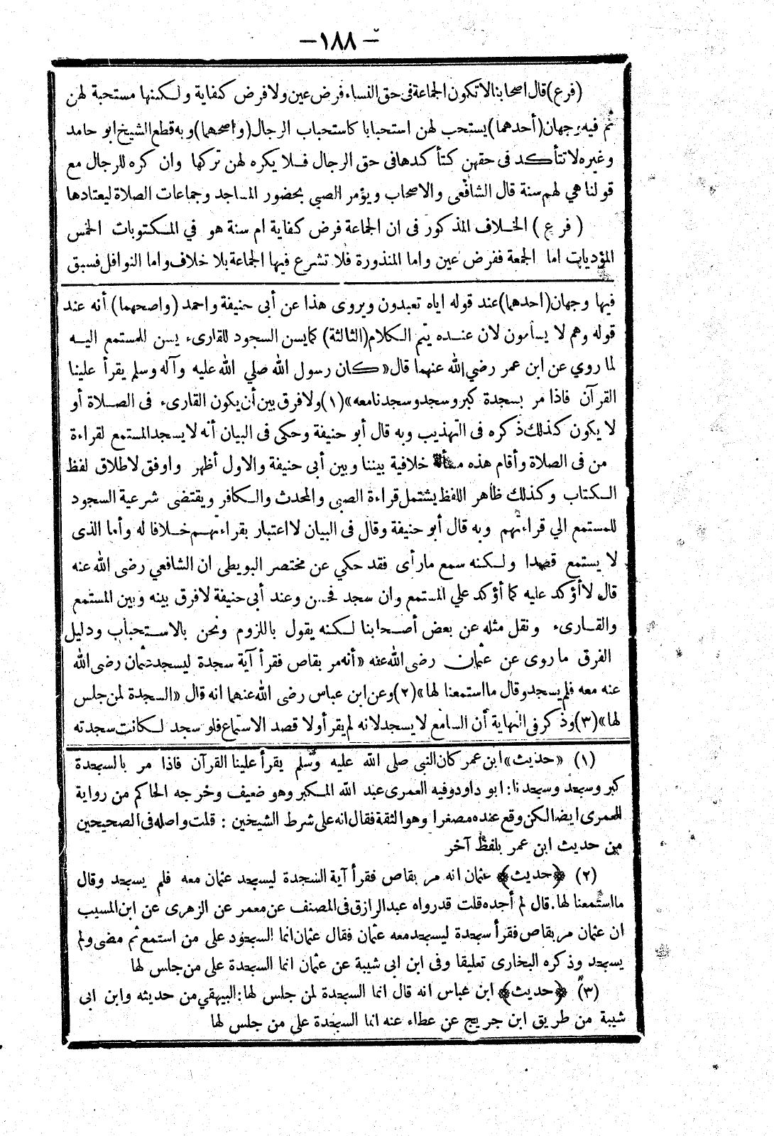 فإذا مر بسجدة كبر وسجد وسجدنا معه " ولا فرق بين أن يكون القارئ في الصلاة أو لا يكون كذلك ذكره في التهذيب وبه قال أبو حنيفة وحكى في البيان أنه لا يسجد المستمع لقراءة من في الصلاة وأقام هذه المسألة خلافية بيننا وبين أبى حنيفة والاول أظهر واوفق لاطلاق لفظ الكتاب وكذلك ظاهر اللفظ يشتمل قراءة الصبى والمحدث والكافر ويقتضى شرعية السجود للمستمع الي قراءتهم وبه قال أبو حنيفة وقال في البيان لا اعتبار بقراءتهم خلافا له وأما الذى لا يستمع قصدا ولكنه سمع ما رأى فقد حكى عن مختصر البويطى ان الشافعي رضى الله عنه قال لا أؤكد عليه كما أؤكد علي المستمع وان سجد فحسن وعند أبى حنيفة لا فرق بينه وبين المستمع والقارئ ونقل مثله عن بعض أصحابنا لكنه يقول باللزوم ونحن بالاستحباب ودليل الفرق ما روى عن عثمان رضى الله عنه " أنه مر بقاص فقرأ آية سجدة ليسجد عثمان رضى الله عنه معه فلم يسجد وقال ما استمعنا لها " وعن ابن عباس رضى الله عنهما انه قال " السجدة لمن جلس لها " وذكر في النهاية أن السامع لا يسجد لانه لم يقرأ ولا قصد الاستماع فلو سجد لكانت سجدته