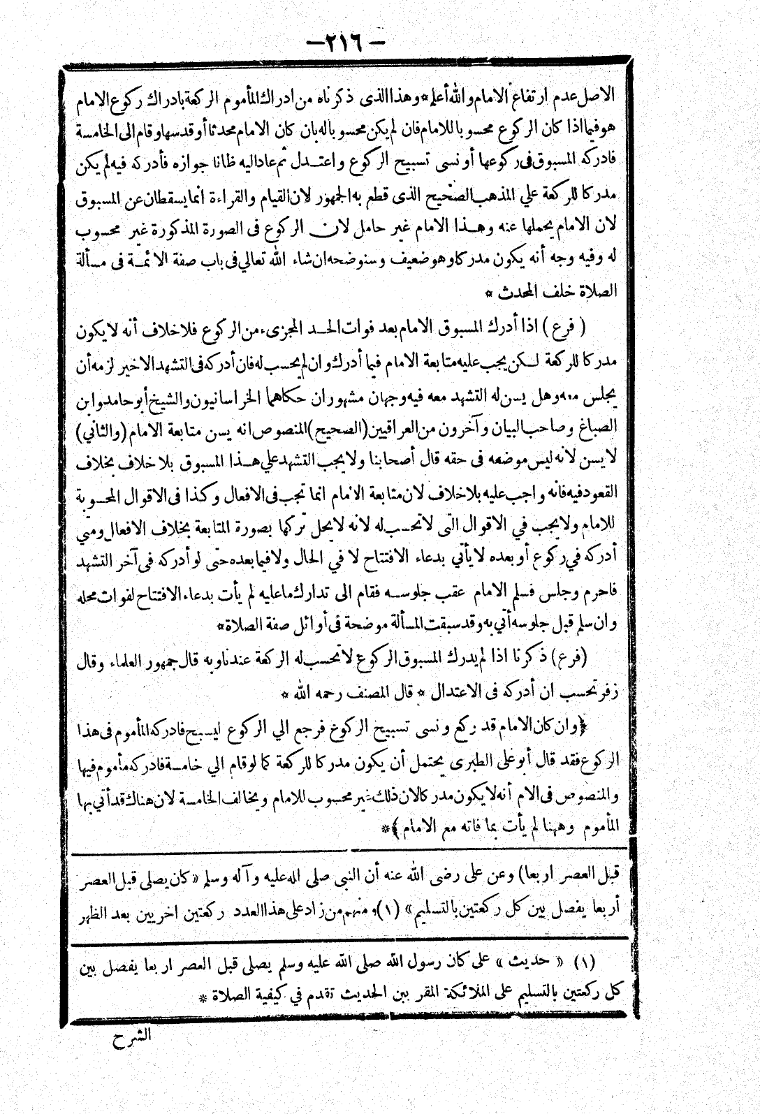 قبل العصر اربعا) وعن على رضى الله عنه أن النبي صلى الله عليه وسلم " كان يصلى قبل العصر أربعا يفصل بين كل ركعتين بالتسليم " ومنهم من زاد على هذا العدد ركعتين اخريين بعد الظهر