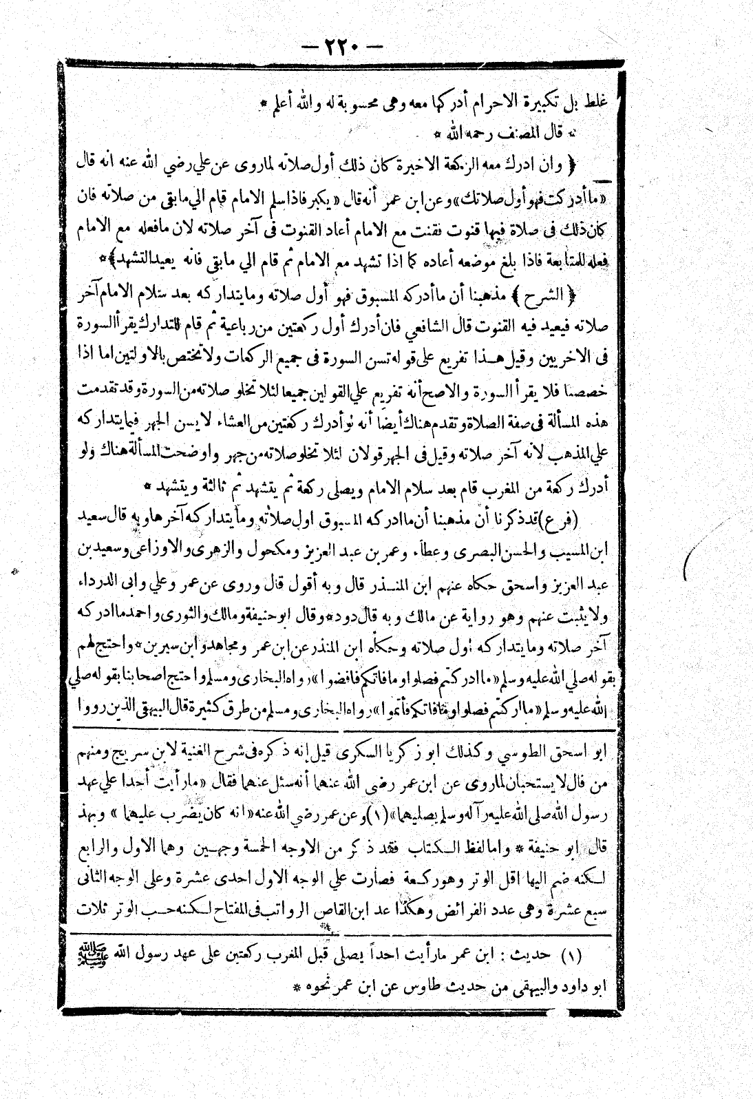 ابو اسحق الطوسي وكذلك أبو زكريا السكرى قيل إنه ذكره في شرح الغنية لابن سريج ومنهم من فال لا يستحبان لما روى عن ابن عمر رضى الله عنهما أنه سئل عنهما فقال " ما رأيت أحدا علي عهد رسول الله صلى الله عليه وسلم يصليهما " وعن عمر رضي الله عنه " انه كان يضرب عليهما " وبهذ قال أبو حنيفة * واما لفظ الكتاب فقد ذكر من الاوجه الخمسة وجهين وهما الاول والرابع لكنه ضم إليها اقل الوتر وهو ركعة فصارت علي الوجه الاول احدى عشرة وعلى الوجه الثاني سبع عشرة وهى عدد الفرائض وهكذا عد ابن القاص الرواتب في المفتاح لكنه حسب الوتر ثلاث