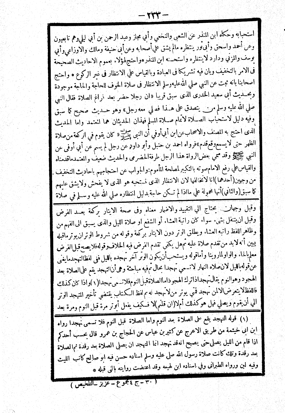 وقبل ان يتنفل بشئ سواء كان راتبة العشاء أو الشفع أو صلاة الليل والذى يسبق إلى الفهم من ظاهر اللفظ راتبه العشاء ويطلق الوتر دون الايتار بركعة وقوله من شروط الوتر ان يوتر ما قبله يبين أنه لا بد من تقدم صلاة عليه ثم هل يكفي تقدم الفرض فيه الخلاف وقوله فلا يصح قبل الفرض معلم بالحاء والواو لما روينا وأما قوله ويستحب أن يكون الوتر آخر تهجده بالليل ففى لفظ التهجد ما يغنى عن قوله بالليل لان صلاه النهار لا تسمي تهجدا بحال ثم فيه مباحثة وهى أن التهجد يقع على الصلاة بعد الهجود وهو النوم يقال تهجد إذا ترك الهجود اما الصلاة قبل النوم فلا تسمى تهجدا وإذا كان كذلك فاللفظ لا يتعرض الا لمن تهجد قمتي يوتر من لا تهجد له ثم لفظ الكتاب يقتضي تأخير المتهجد الوتر الي أن يقوم ويصلي فهل هو كذلك أم لا (ان قلتم) لا فكيف يفعل أيوتر مرة قبل النوم ومرة بعد