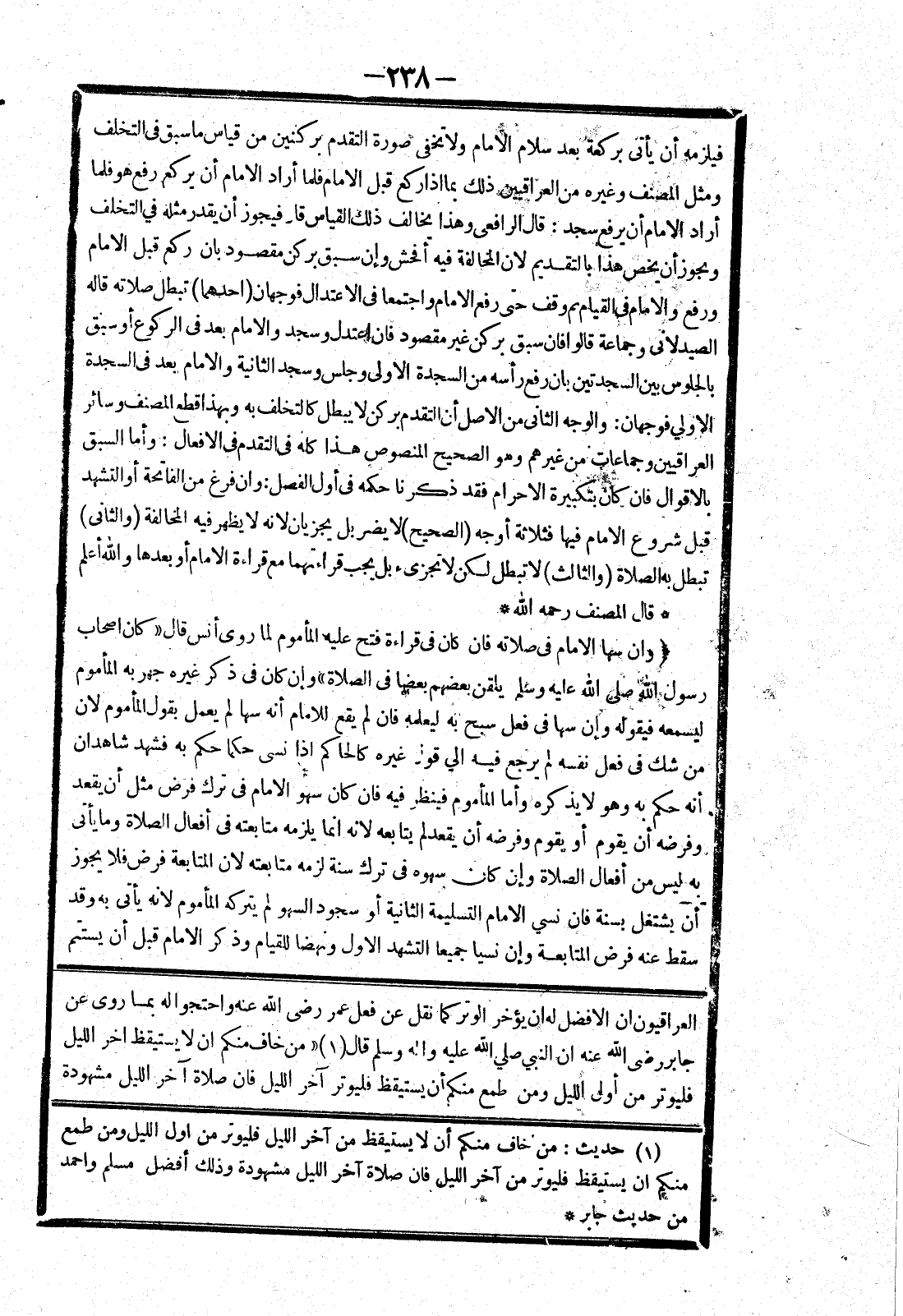 العراقيون ان الافضل له ان يؤخر الوتر كما نقل عن فعل عمر رضى الله عنه واحتجوا له بما روى عن جابر رضى الله عنه ان النبي صلي الله عليه واله وسلم قال " من خاف منكم ان لا يستيقظ آخر الليل فليوتر من أول الليل ومن طمع منكم أن يستيقظ فليوتر آخر الليل فان صلاة آخر الليل مشهودة