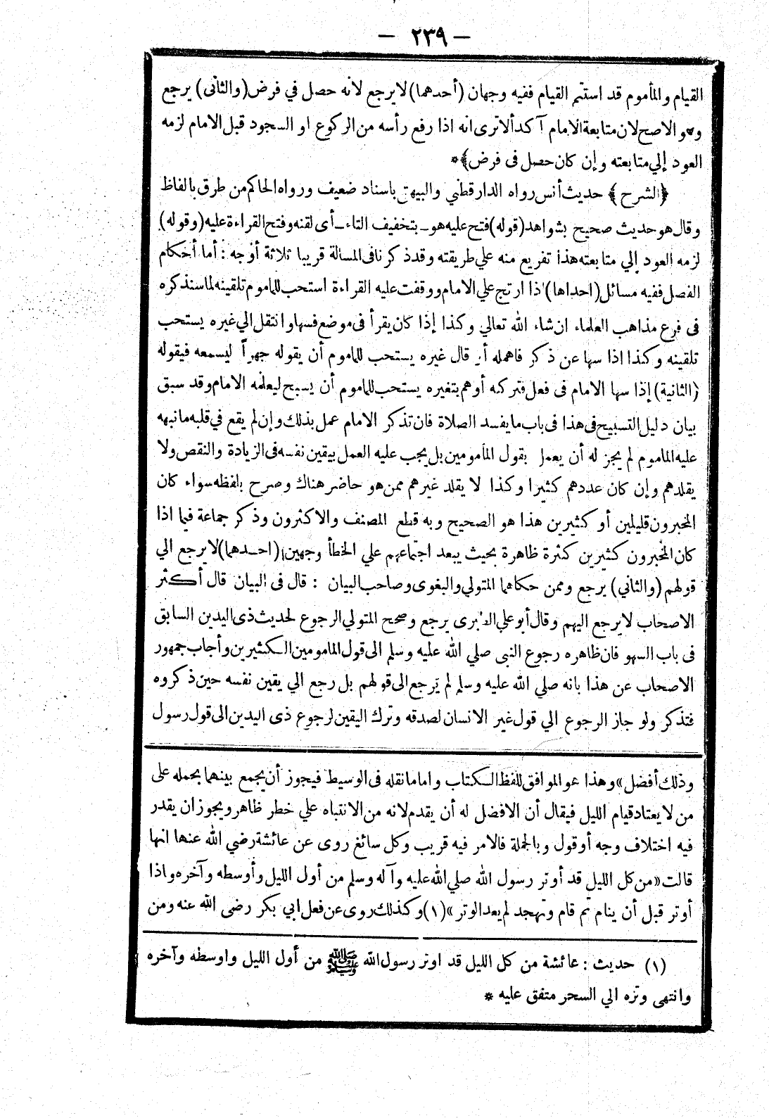وذلك افضل " وهذا هو الموافق للفظ الكتاب واما ما نقله في الوسيط فيجوز أن يجمع بينهما بحمله على من لا يعتاد قيام الليل فيقال أن الافضل له أن يقدم لانه من الانتباه علي خطر ظاهر ويجوز ان يقدر فيه اختلاف وجه أو قول وبالجملة فالامر فيه قريب وكل سائغ روى عن عائشة رضي الله عنها انها قالت " من كل الليل قد أوتر رسول الله صلي الله عليه وسلم من أول الليل وأوسطه وآخره وإذا أوتر قبل أن ينام تم قام وتهجد لم يعد الوتر " وكذلك روى عن فعل ابي بكر رضى الله عنه ومن