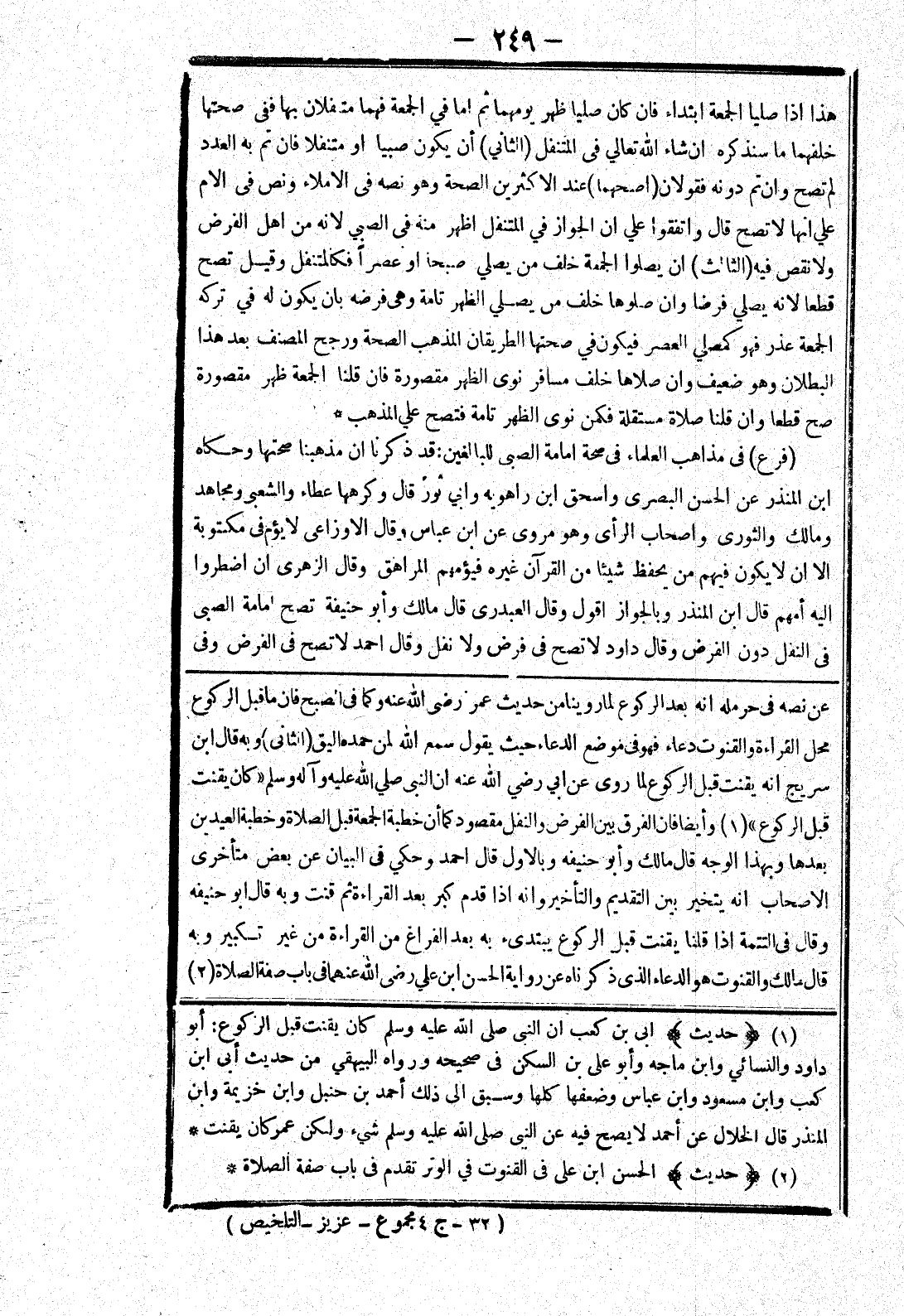عن نصه في حرمله انه بعد الركوع لما روينا من حديث عمر رضى الله عنه وكما في الصبح فان ما قبل الركوع محل القراءة والقنوت دعاء فهو في موضع الدعاء حيث يقول سمع الله لمن حمده اليق (الثاني) وبه قال ابن سريج انه يقنت قبل الركوع لما روى عن ابي رضي الله عنه ان النبي صلى الله عليه وسلم " كان يقنت قبل الركوع " وأيضا فان الفرق بين الفرض والنفل مقصود كما أن خطبة الجمعة قبل الصلاة وخطبة العيدين بعدها وبهذا الوجه قال مالك وأبو حنيفة وبالاول قال احمد وحكي في البيان عن بعض متأخرى الاصحاب انه يتخير بين التقديم والتأخير وانه إذا قدم كبر بعد القراءة ثم قنت وبه قال أبو حنيفة وقال في التتمة إذا قلنا يقنت قبل الركوع يبتدئ به بعد الفراغ من القراءة من غير تكبير وبه قال مالك والقنوت هو الدعاء الذى ذكرناه عن رواية الحسن ابن علي رضى الله عنهما في باب صفة الصلاة