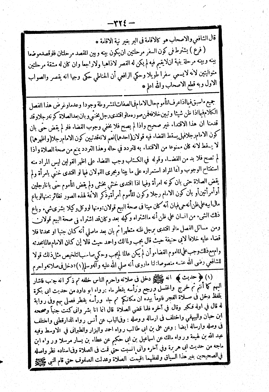 مال ابيه علي ظن أنه حى فبان أنه كان ميتا ففى صحة البيع قولان: ومنها لو وكل وكيلا بشرى شئ وباع ذلك الشئ من انسان علي ظن أنه ما اشتراه وكيله بعد وكان قد اشتراه في صحة البيع قولان ومن مسائل الفصل ما لو اقتدى برجل ظنه متطهرا ثم بان بعدما صلي أنه كان جنبا أو محدثا فلا قضاء عليه خلافا لابي حنيفة حيث قال يجب ولمالك واحمد حيث قالا إن كان الامام عالما بحدثه وام مع ذلك وجب علي المأموم القضاء وأن لم يكن عالما لم يجب وحكي صاحب التلخيص مثل ذلك قولا للشافعي رضى الله عنه منصوصا: لنا ما روى أنه صلي الله عليه وسلم " دخل في صلاته واحرم