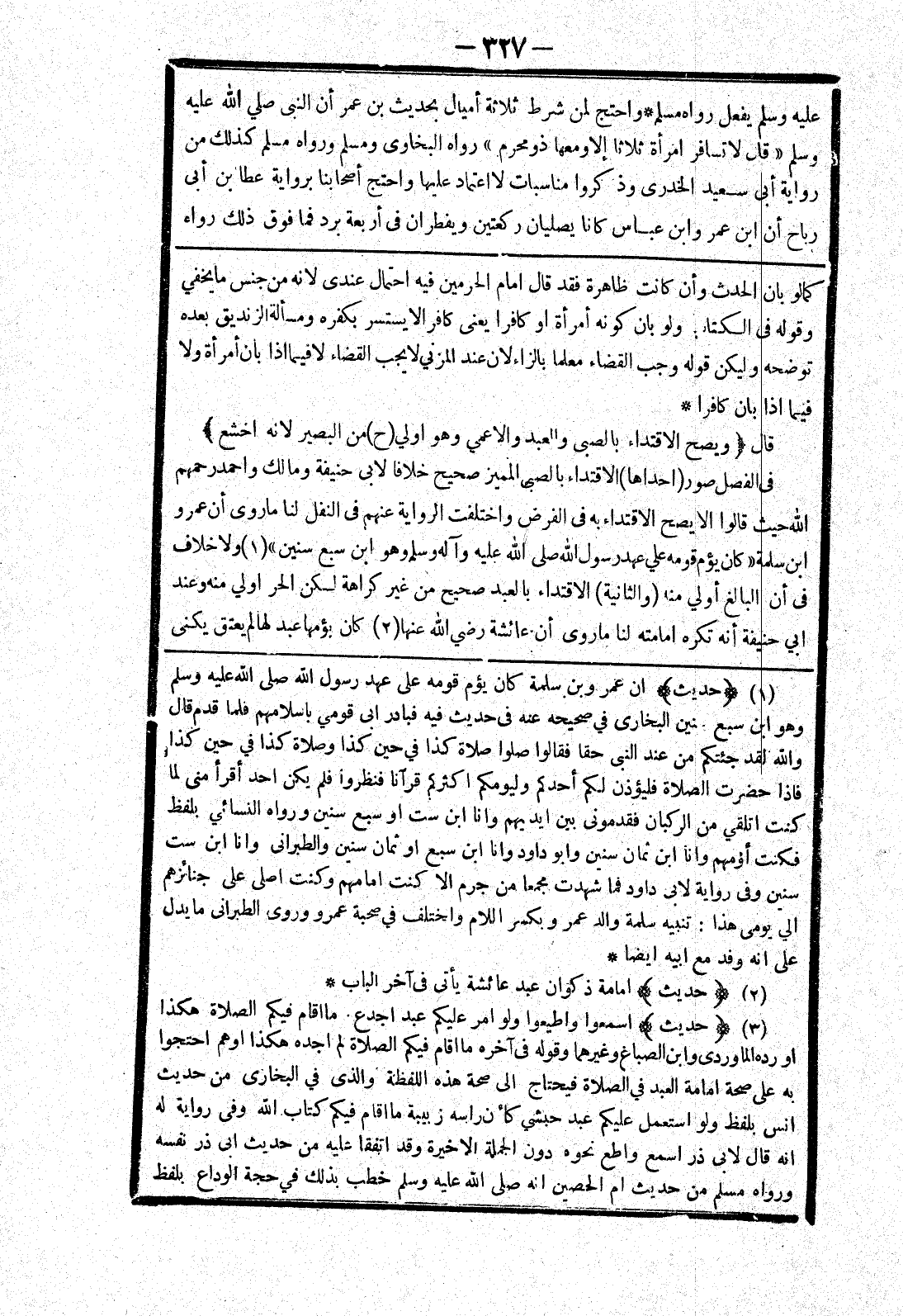 كما لو بان الحدث وأن كانت ظاهرة فقد قال امام الحرمين فيه احتمال عندي لانه من جنس ما يخفي وقوله في الكتاب ولو بان كونه أمرأة أو كافرا يعنى كافرا لا يستشر بكفره ومسألة الزنديق بعده توضحه وليكن قوله وجب القضاء معلما بالزاء لان عند المزني لا يجب القضاء لا فيما إذا بان أمرأة ولا فيما إذا بان كافرا * قال (ويصح الاقتداء بالصبى والعبد والاعمي وهو اولي (ح) من البصير لانه اخشع) في الفصل صور (احداها) الاقتداء بالصبى المميز صحيح خلافا لابي حنيفة ومالك واحمد رحمهم الله حيث قالوا الا يصح الاقتداء به في الفرض واختلفت الرواية عنهم في النفل لنا ما روى أن عمرو ابن سلمة " كان يؤم قومه علي عهد رسول الله صلى الله عليه وسلم وهو ابن سبع سنين " ولا خلاف في أن البالغ أولي منه (والثانية) الاقتداء بالعبد صحيح من غير كراهة لكن الحر اولي منه وعند ابي حنيفة أنه تكره امامته لنا ما روى أن عائشة رضي الله عنها كان يؤمها عبد لها لم يعتق يكنى